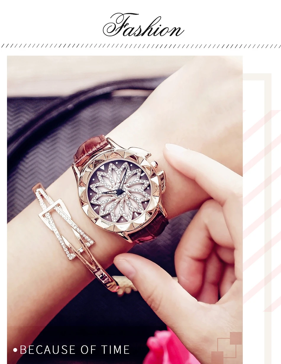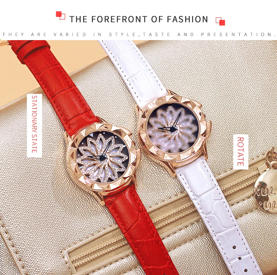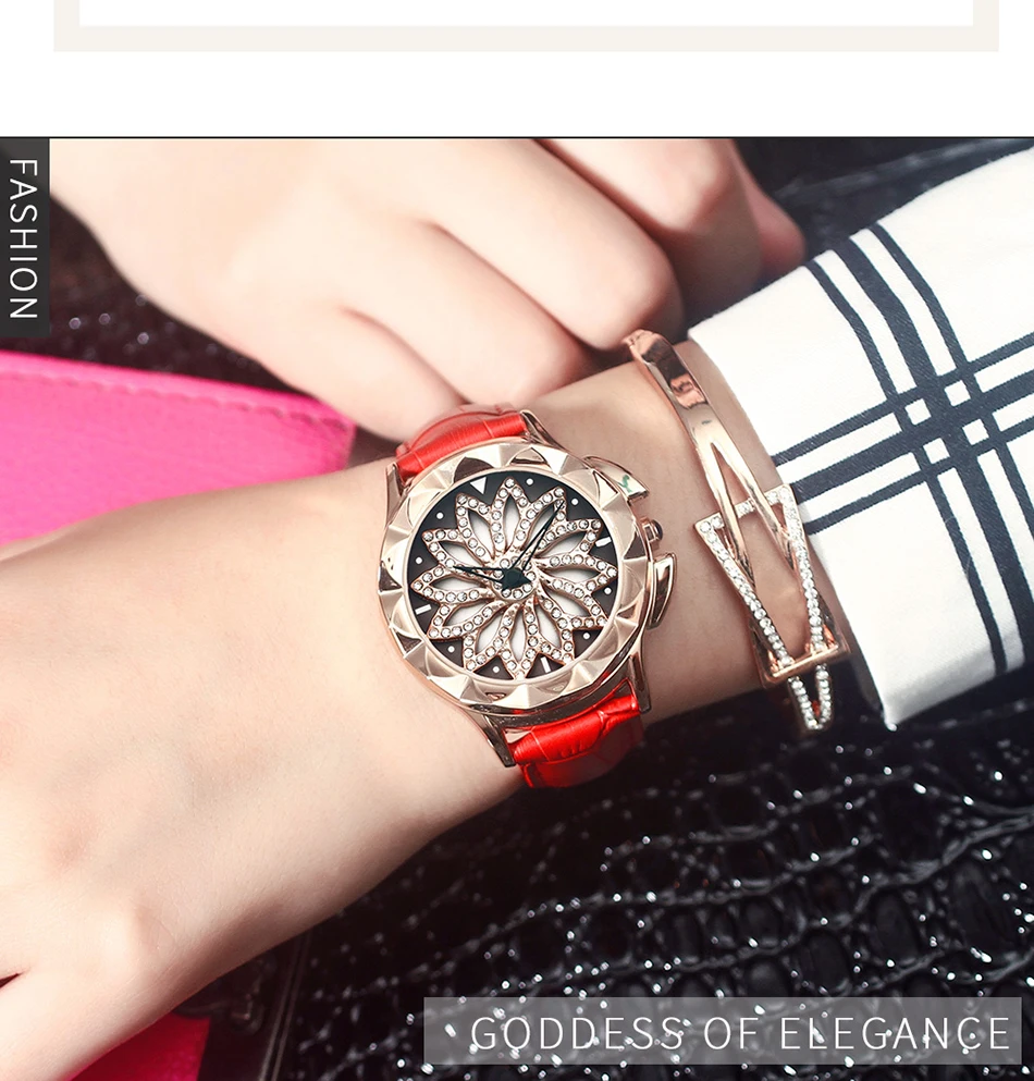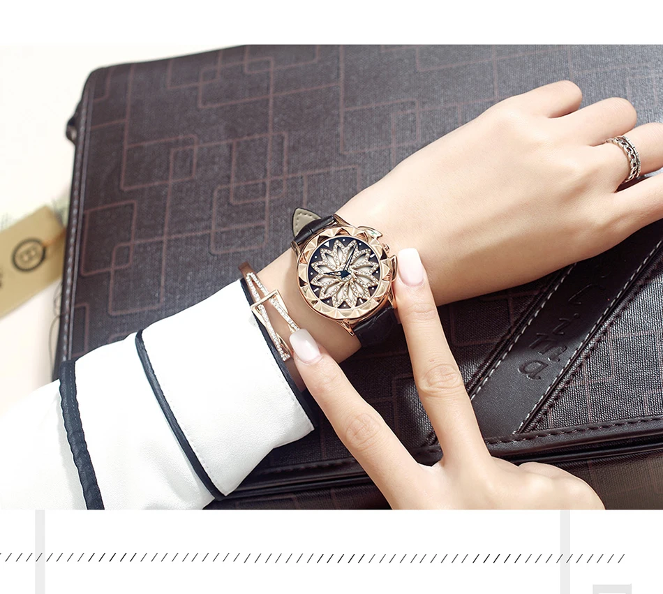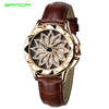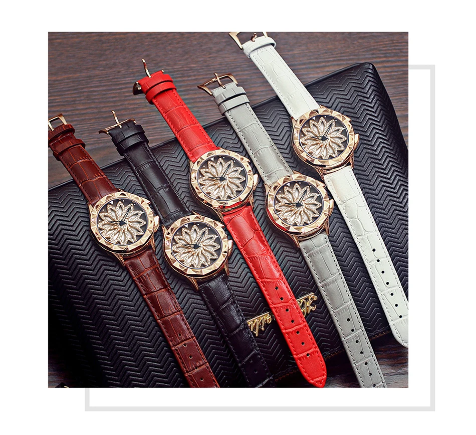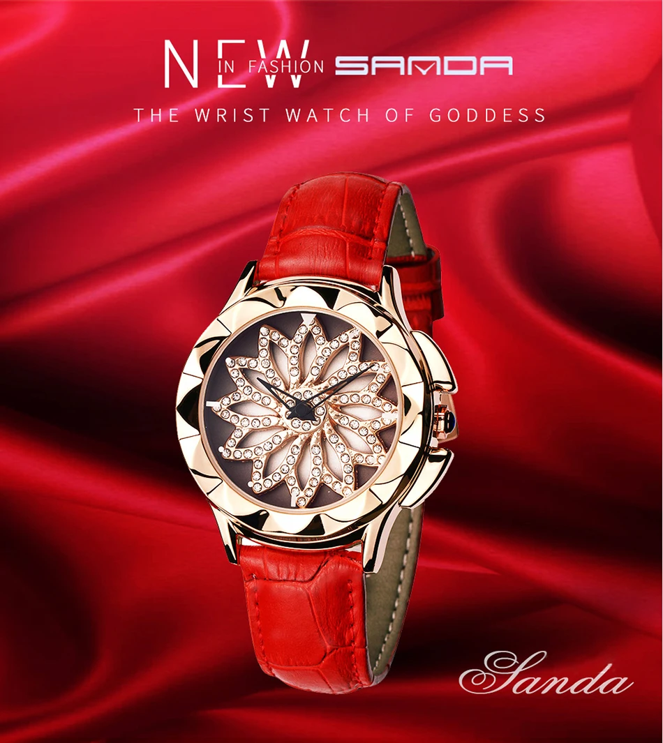 SANDA 211 Rotate Dial Watch Women Top Brand Luxury Fashion Diamond Gold Ladies Watches Female Leather Wristwatches Reloj Mujer