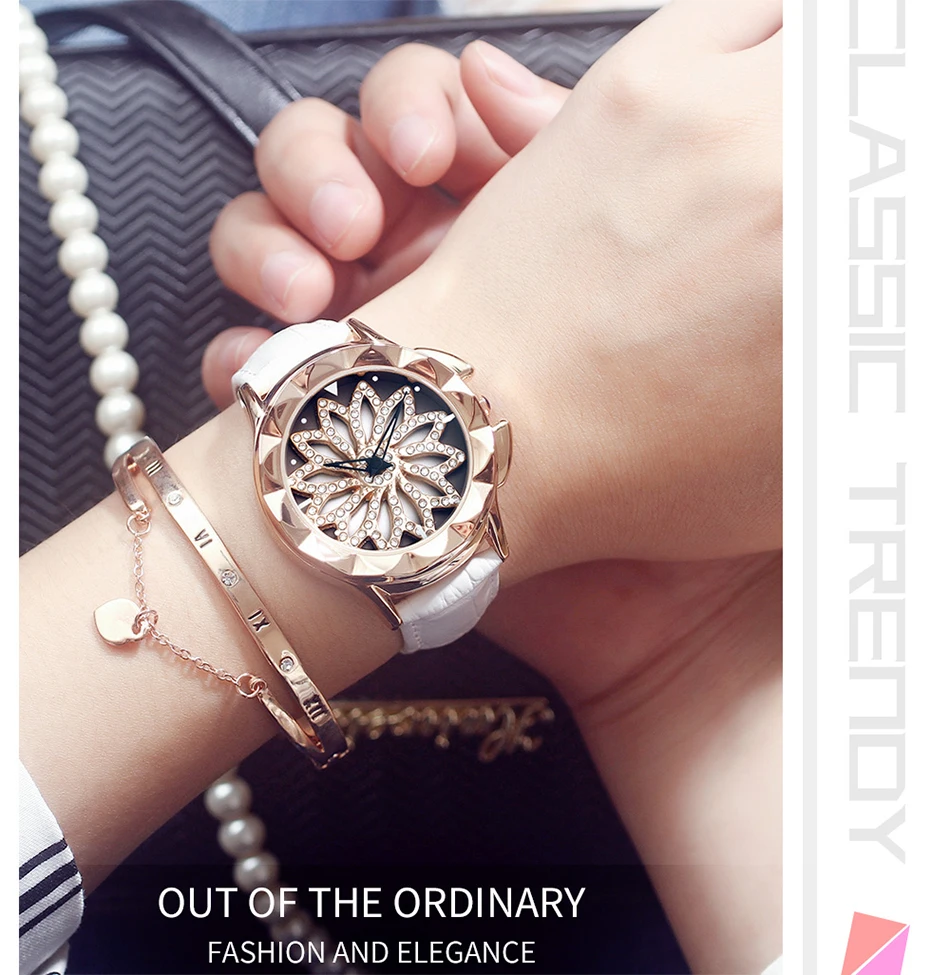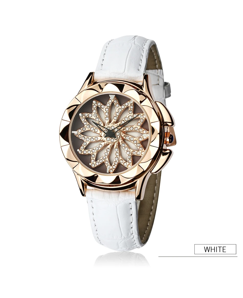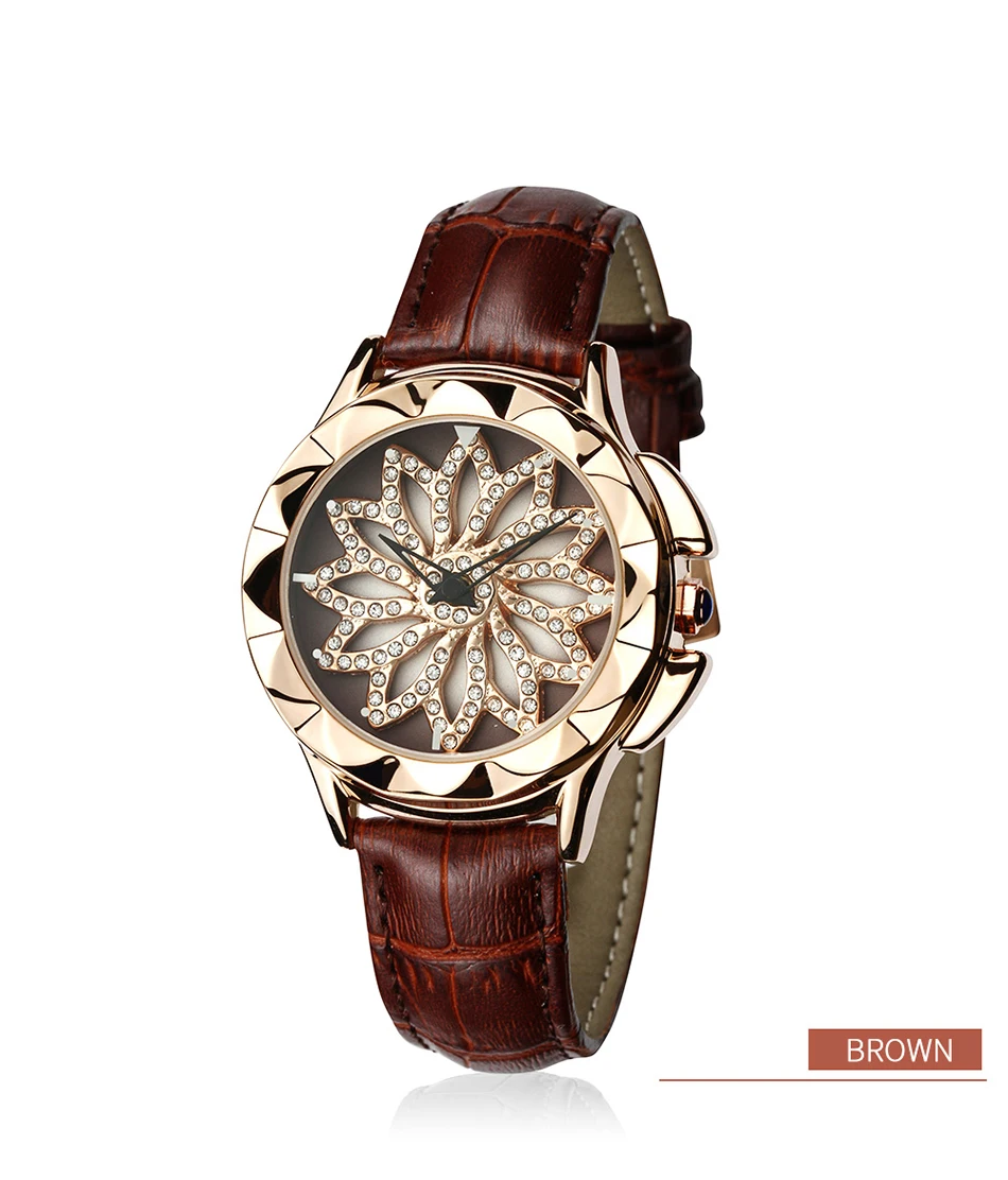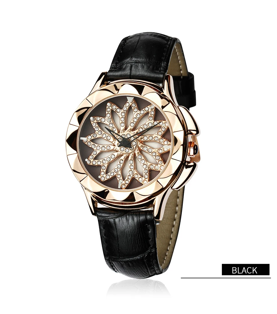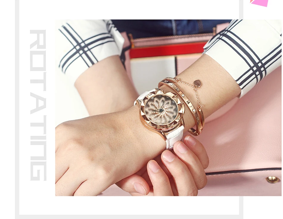SANDA 211 Rotate Dial Watch Women Top Brand Luxury Fashion Diamond Gold Ladies Watches Female Leather Wristwatches Reloj Mujer
