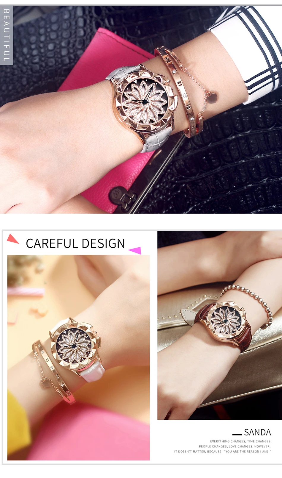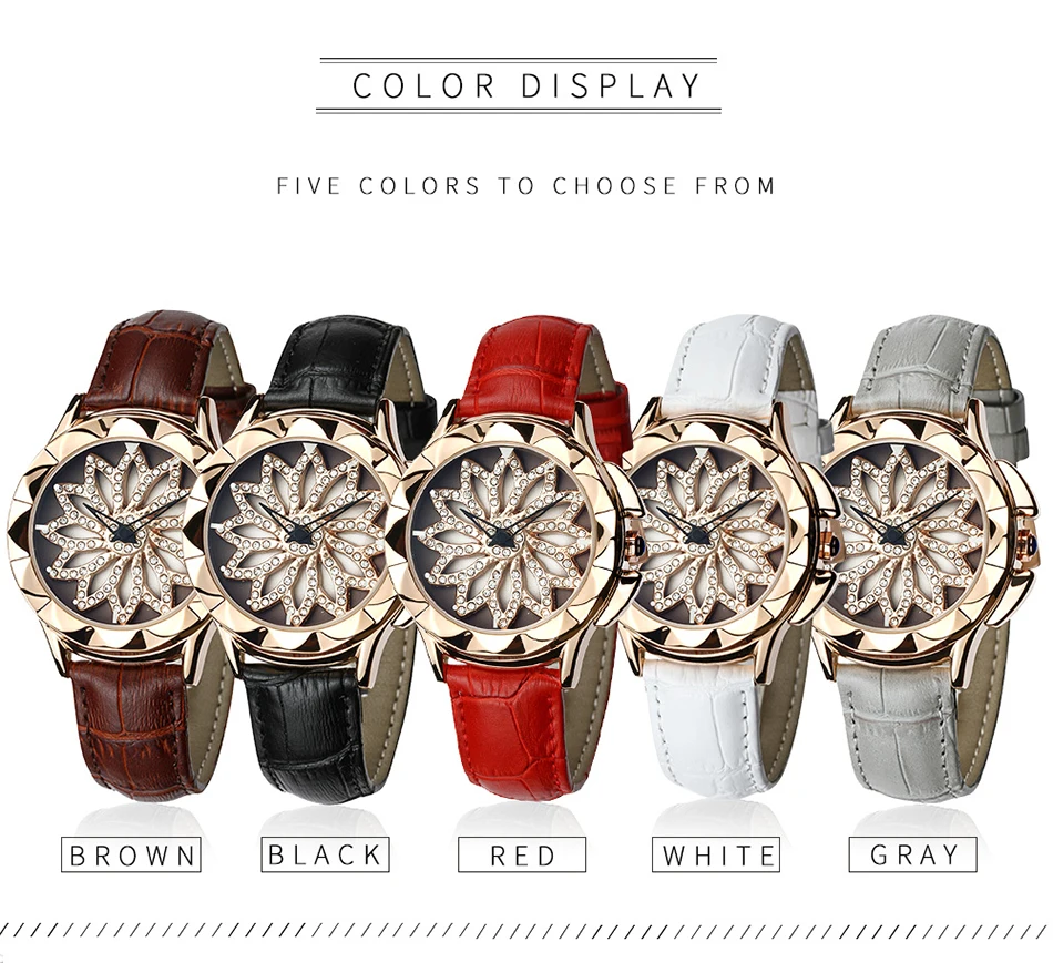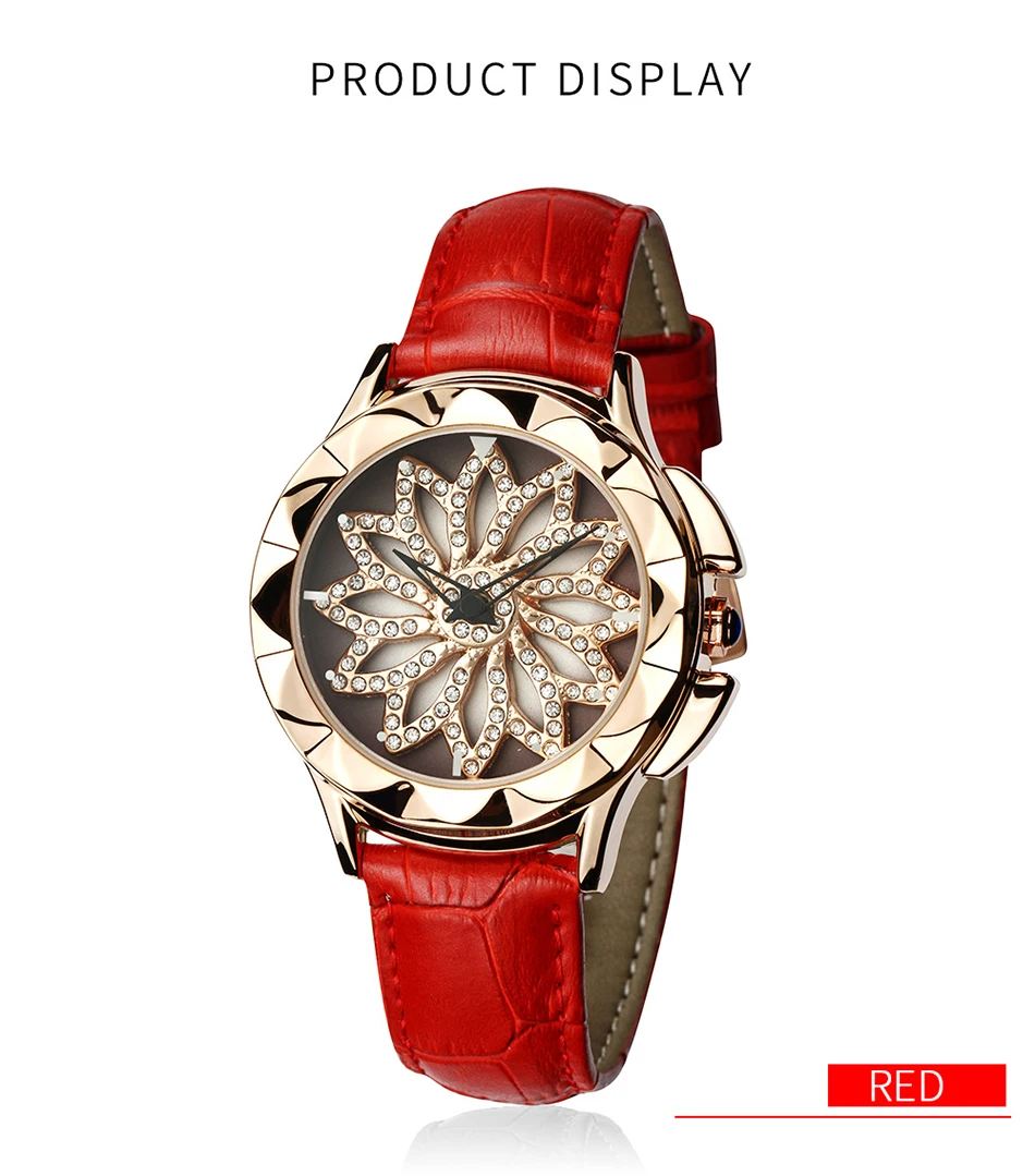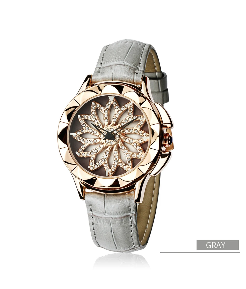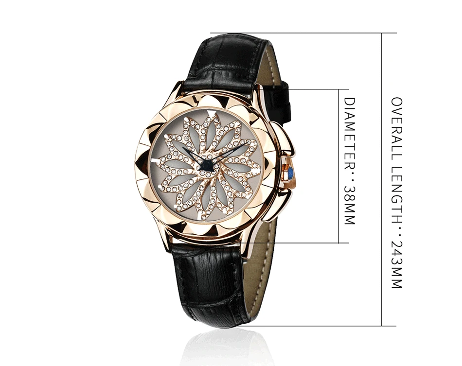 SANDA 211 Rotate Dial Watch Women Top Brand Luxury Fashion Diamond Gold Ladies Watches Female Leather Wristwatches Reloj Mujer