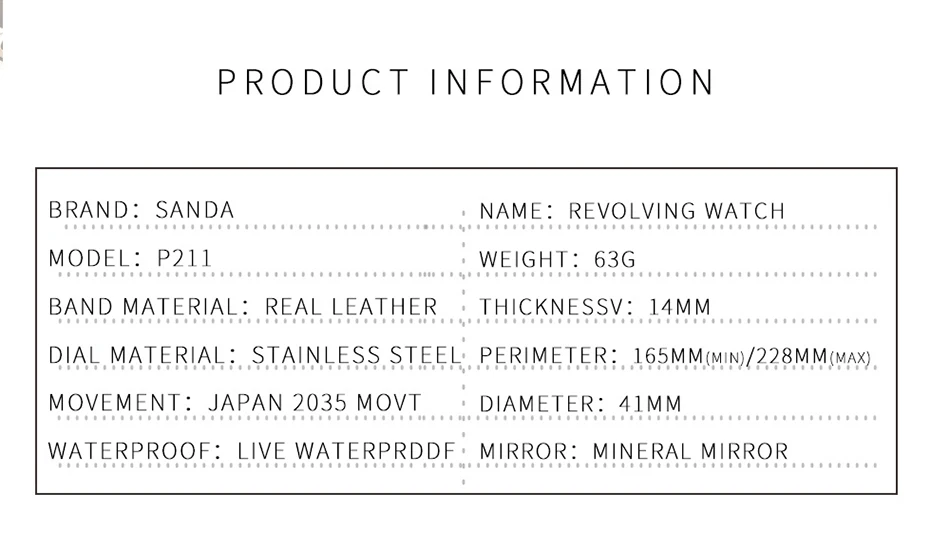 This SANDA P211 is a new arrival of my store,so there is no buyer’s feedback for it yet.but not worry,this is original brand.