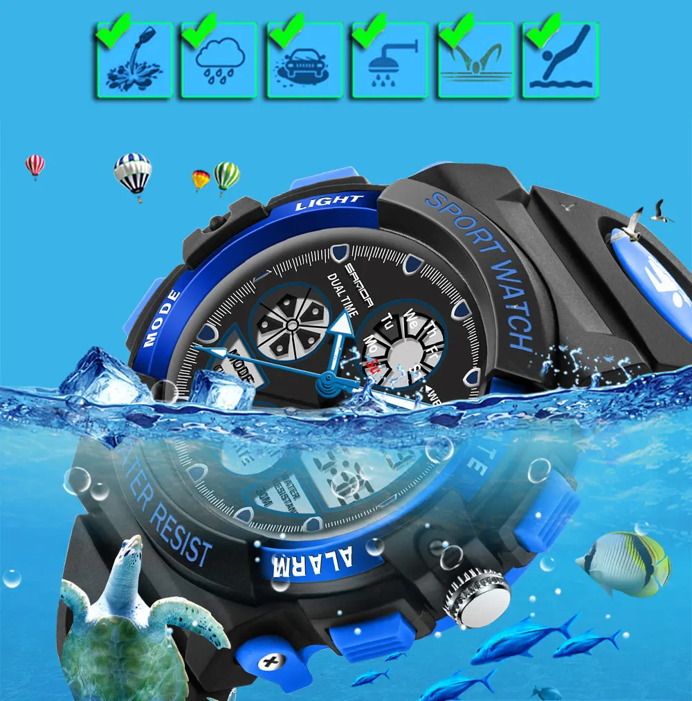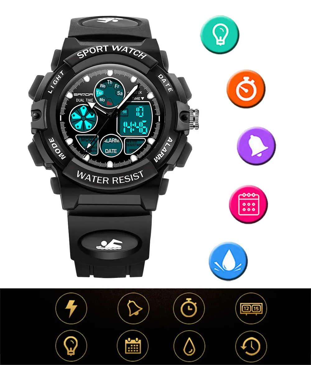 SANDA Brand Waterpoof Sport Children Watch Kids Watches Girls Boys Electronic Clock Child LED Digital Wristwatches for Girl Boy