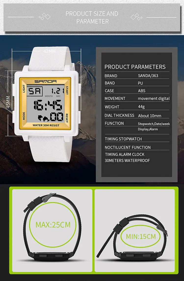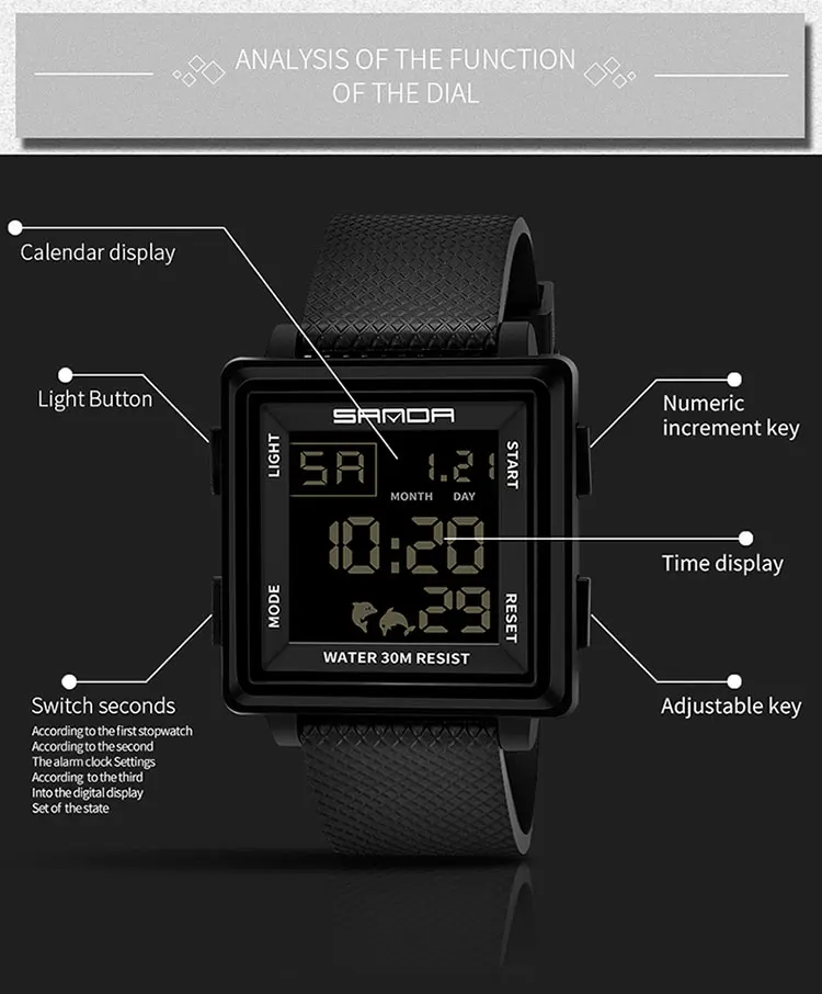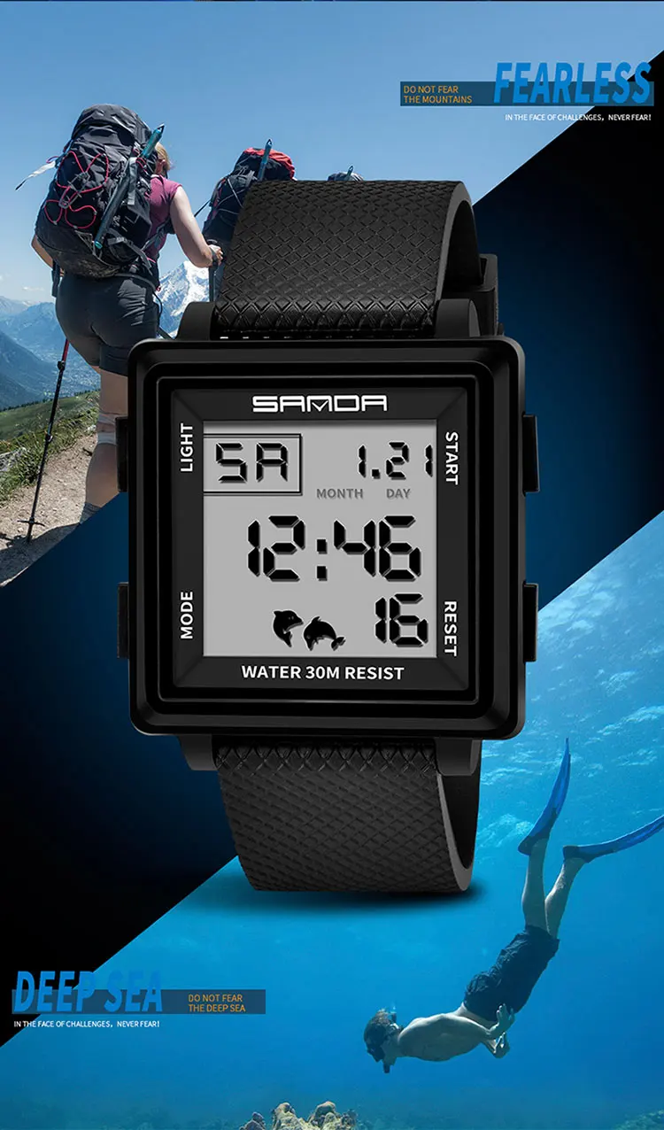 SANDA Men Outdoor Sports Watch Luxury Famous Brand LED Digital Watches Man Waterproof Wristwatches Clock Men Relojes Deportivos