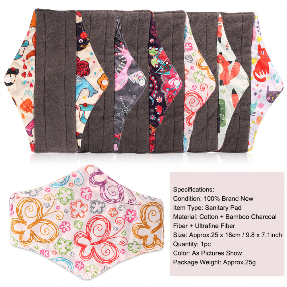 Sanitary Pad Soft Reusable Charcoal Bamboo Cloth Menstrual Pads Soft Comfortable Sanitary Pad for Women Panty 6 Colors 25x18CM Random Color