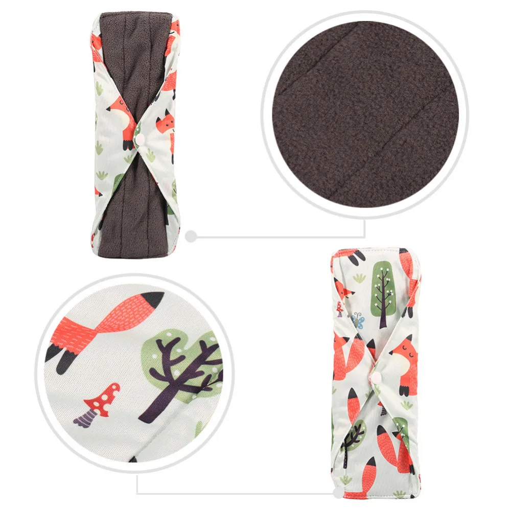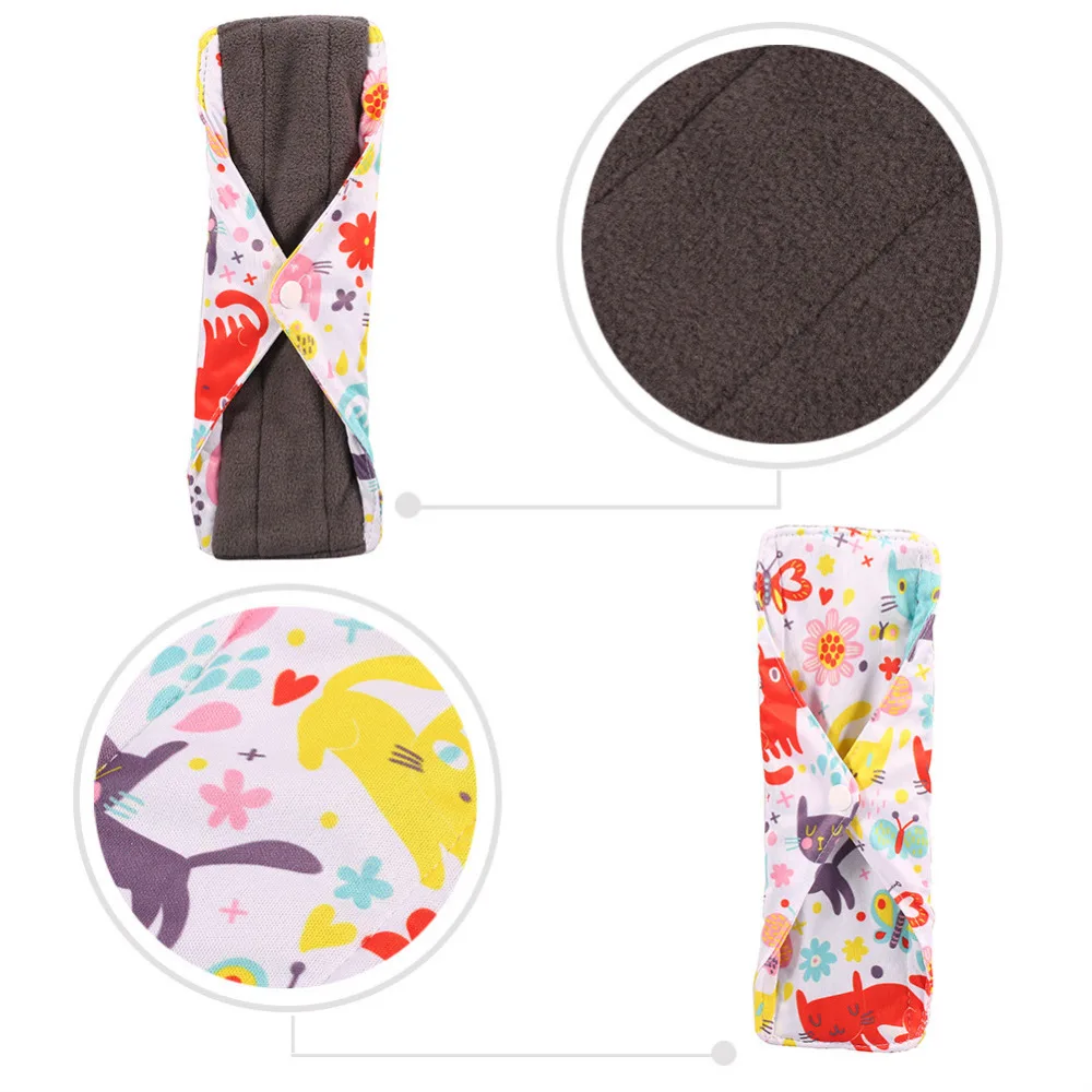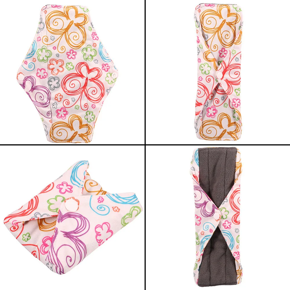 Sanitary Pad Soft Reusable Charcoal Bamboo Cloth Menstrual Pads Soft Comfortable Sanitary Pad for Women Panty 6 Colors 25x18CM Random Color