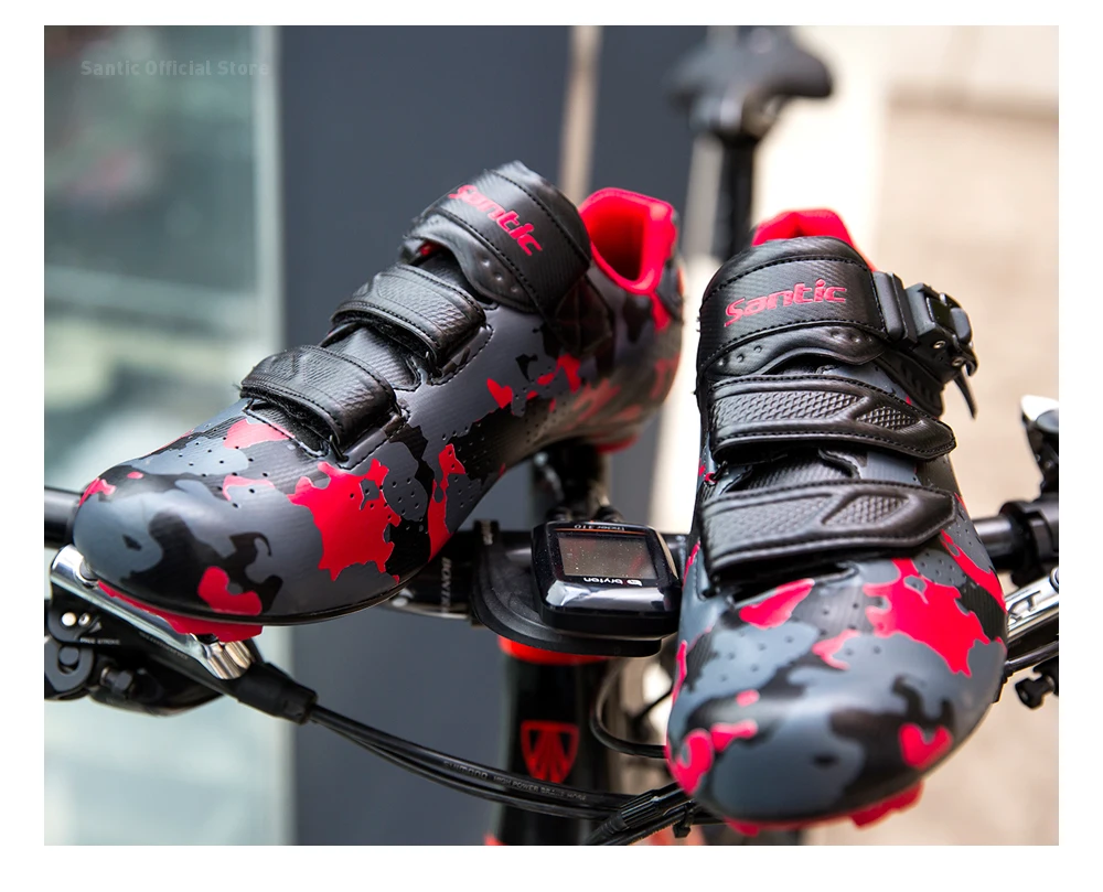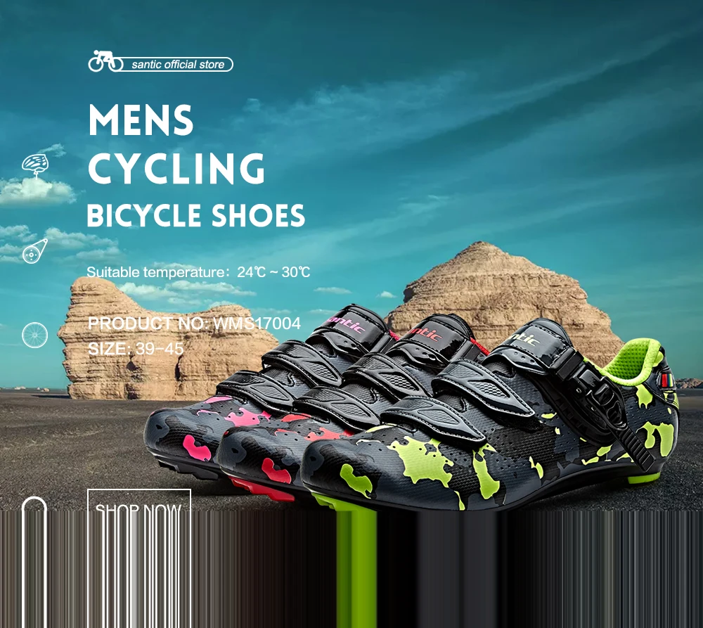 Santic Men Cycling Road Shoes Carbon Fiber Cycling Athletic Racing Team Bicycle Shoes Breathable waterproof riding shoes