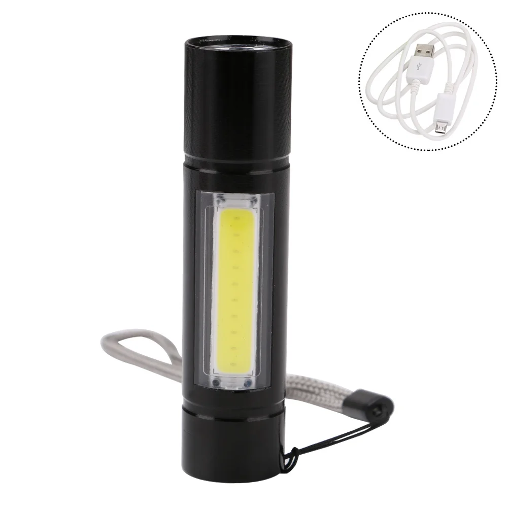 Sanyi Portable Flashlight COB LED Tactical Torch USB Charging Flashlights Penlight Built-in Battery Lighting Camping Lantern+Box