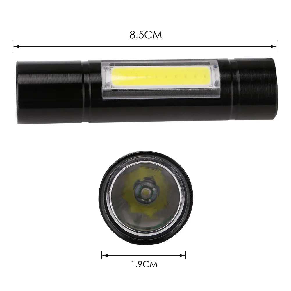 3 LED light modes: push button On/Off trigger switch with XPE high light, XPE strobe, COB high light.