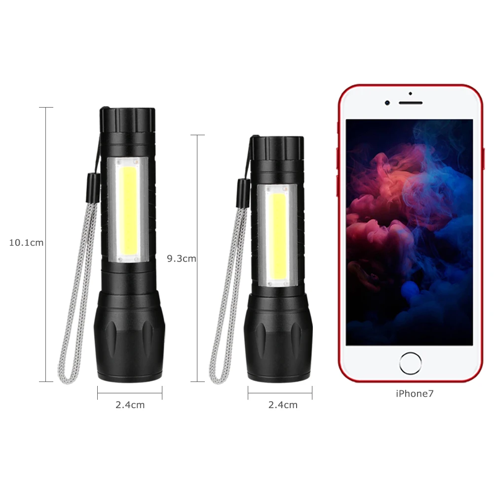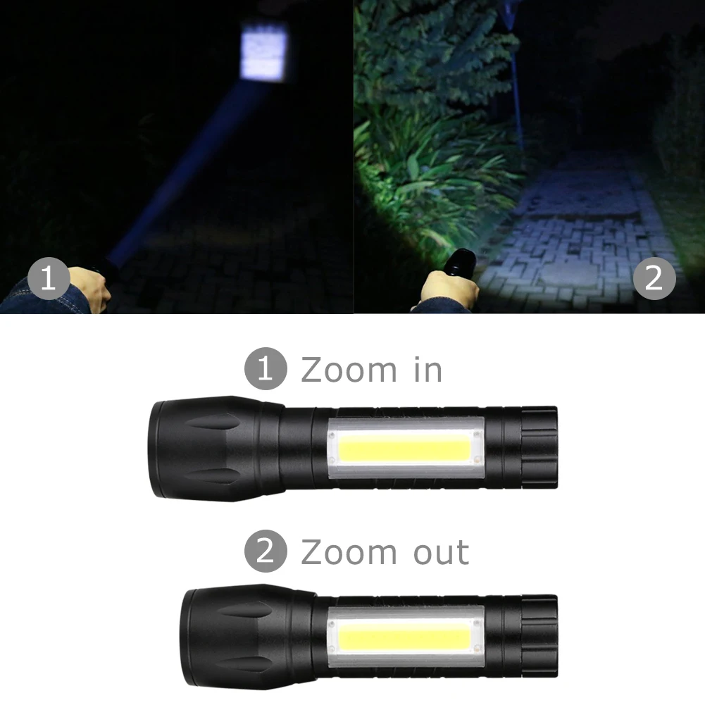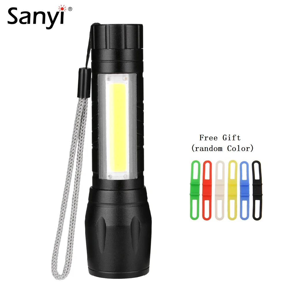 Sanyi Q5+COB LED Flashlight Portable Lantern Mini Zoomable Focus Torch Use AA Battery Waterproof in life Work Lighting+Free Gift