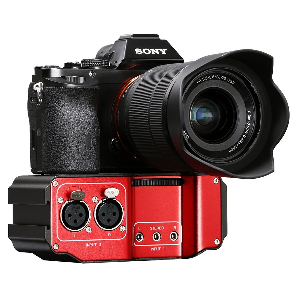 The SARAMONIC SR-PAX2 is a two-channel audio mixer with pre-amplifier and phantom power designed for mirrorless digital cameras, Blackmagic Design pocket cinema cameras or DSLR with a microphone jack. It is a compact and lightweight mixer ideal for recording professional-quality audio from four sources and mixing them into your camera. It attaches to the base of a camera, and a threaded socket on its base allows for mounting on a tripod or case. With 4 sets of inputs, the SR-PAX2 accepts signals from various of mic or line level sources such as balanced XLR microphones, 3.5mm microphones, wireless microphones and external audio mixers. The input levels of each channel can be controlled with the dual gain control knobs. A phone jack allows you to monitor the audio in real time. Making your recording work much easier.