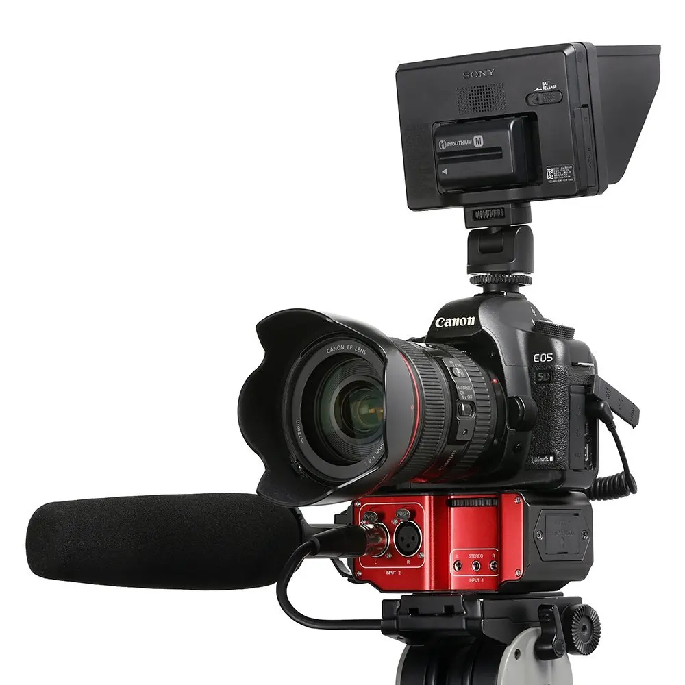 The SARAMONIC SR-PAX2 is a two-channel audio mixer with pre-amplifier and phantom power designed for mirrorless digital cameras, Blackmagic Design pocket cinema cameras or DSLR with a microphone jack. It is a compact and lightweight mixer ideal for recording professional-quality audio from four sources and mixing them into your camera. It attaches to the base of a camera, and a threaded socket on its base allows for mounting on a tripod or case. With 4 sets of inputs, the SR-PAX2 accepts signals from various of mic or line level sources such as balanced XLR microphones, 3.5mm microphones, wireless microphones and external audio mixers. The input levels of each channel can be controlled with the dual gain control knobs. A phone jack allows you to monitor the audio in real time. Making your recording work much easier.