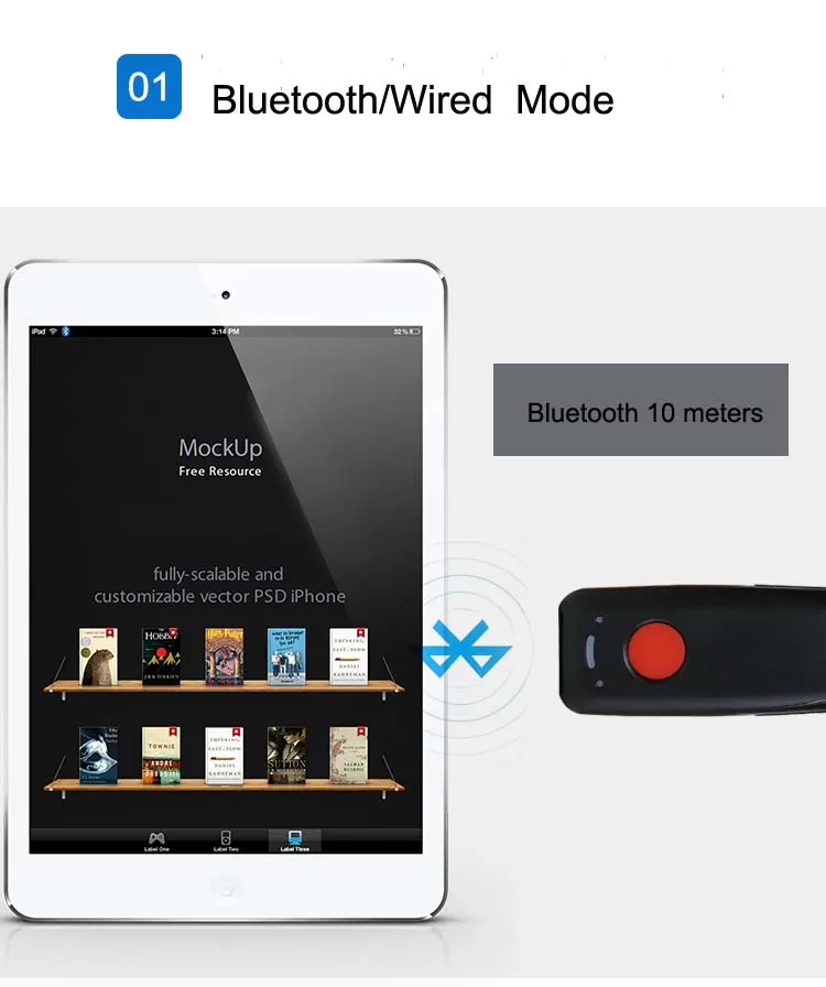 Scanhero Pocket Wireless Bluetooth Barcode Scanner Laser Portable Reader Red Light CCD Bar Code Scanner for IOS Android Windows
