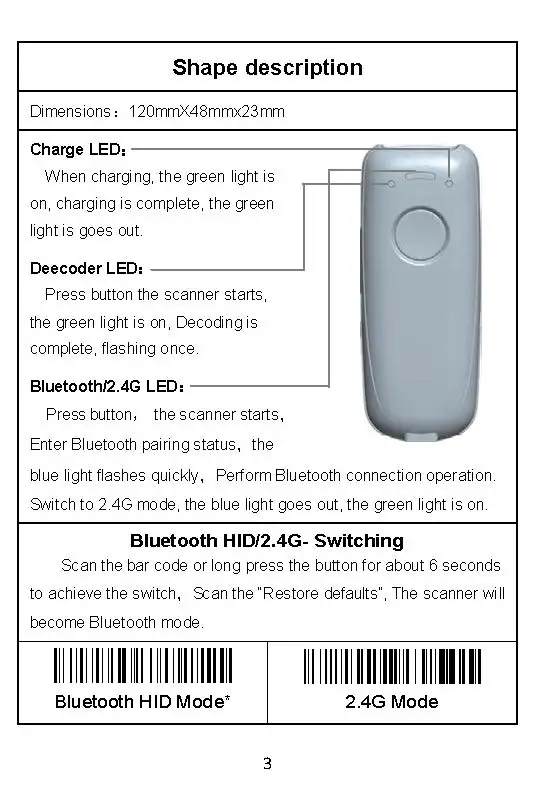 3, Support scanning barcodes or long press key switch modes.