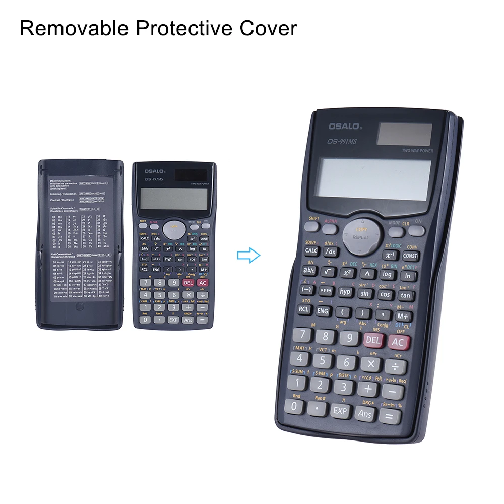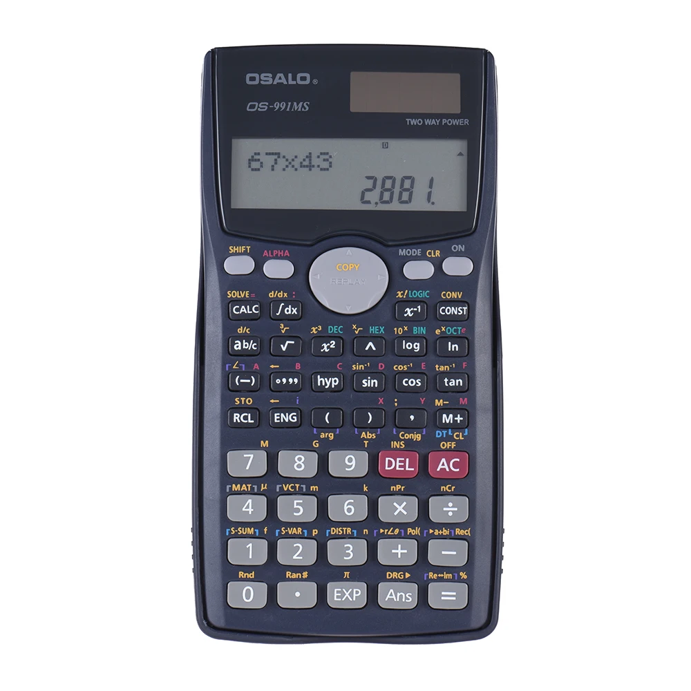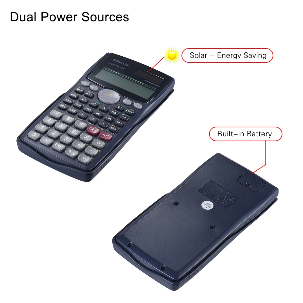 This scientific calculator can offer 401 functions, including calculation basic and complex number, equation(EQN), Matrix(MAT), Vector(VTC) and etc. 2 lines 10 + 2 display show the formula and result clearly. Ideal helper for middle/high school students and Maths researcher.