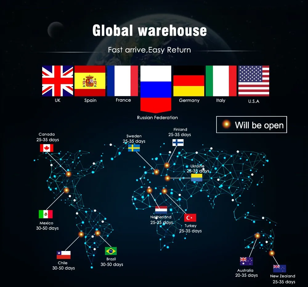 Packages from our warehouse in China will be shipped by ePacket or EMS depending on the weight and size of the product. Packages shipped from our US warehouse are shipped through USPS.