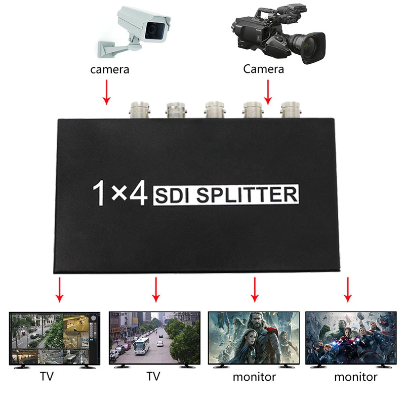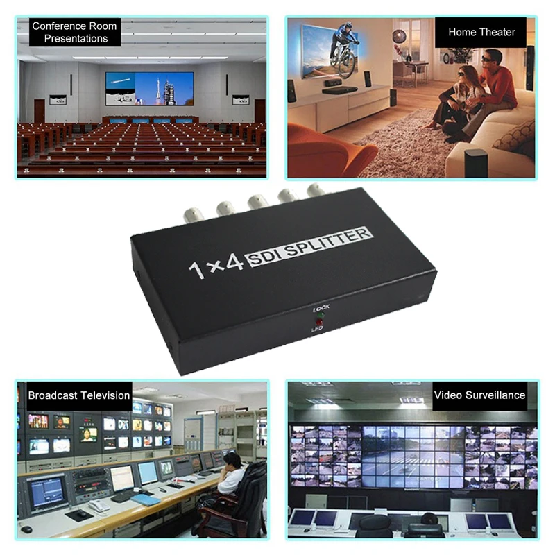 SDI Splitter 1×4 Video Converter 3G/HD/SDI repeater support 1080P Distribution Extender for Projector Monitor Camera