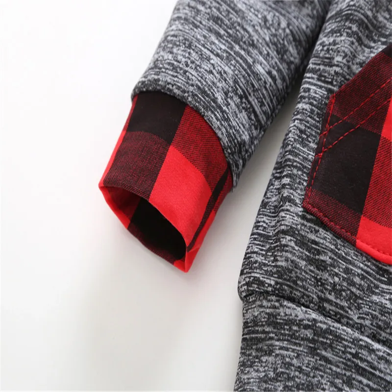 Baby Boys Girls Christmas Clothing Set Kids 2pcs Hoodies+Pants Kids Hooded Set Leggings Hooded Suits Boys Red Plaid