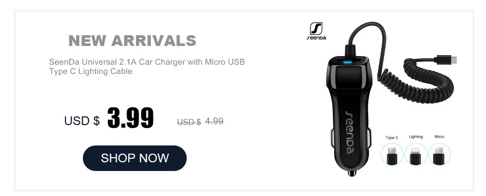 SeenDa Car Charger with Micro USB Type C Cable Quick Fast Mobile Phone Charger For iPhone X 7 /Samsung S9 S8 Plus /Huawei Xiaomi