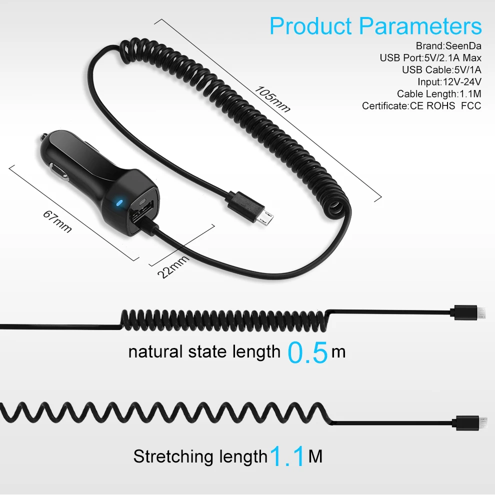 Item:Seenda Universal Car Charger With USB Cable