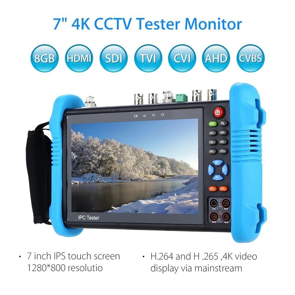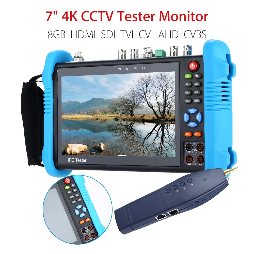 SEESII 7″ 4K CCTV IP Tester Monitor 8GB SDI TVI CVI AHD CVBS Camera Multimeter PTZ POE Test WIFI HDMl Video Onvif H.265
