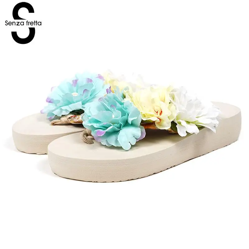 Senza Fretta 2018 Original Retro Flowers’slippers Thick-bottom Women Sandals Summer Platform Flower Wo,en Slipper Casual Sandals