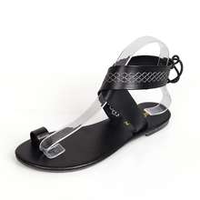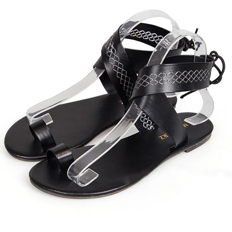 Senza Fretta Chaussures Femme ete 2018 Summer White Flat Heels Sandals Women Lace up Flip Flops Leather Ankle Strap Sandalias