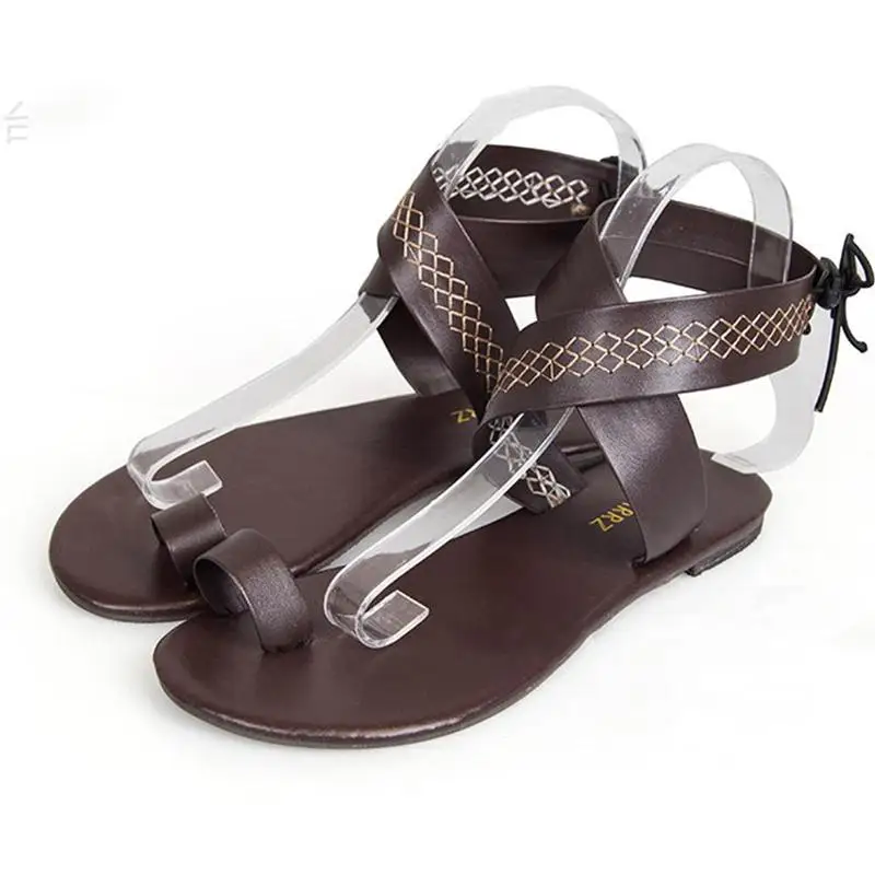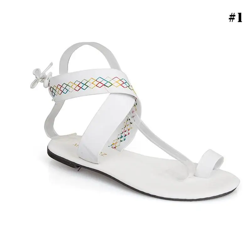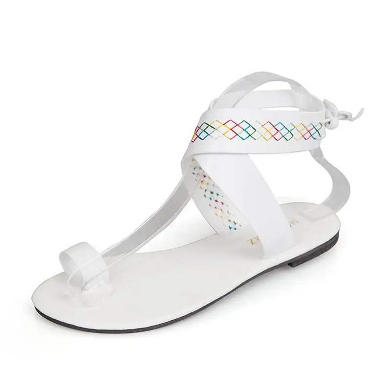 Senza Fretta Chaussures Femme ete 2018 Summer White Flat Heels Sandals Women Lace up Flip Flops Leather Ankle Strap Sandalias