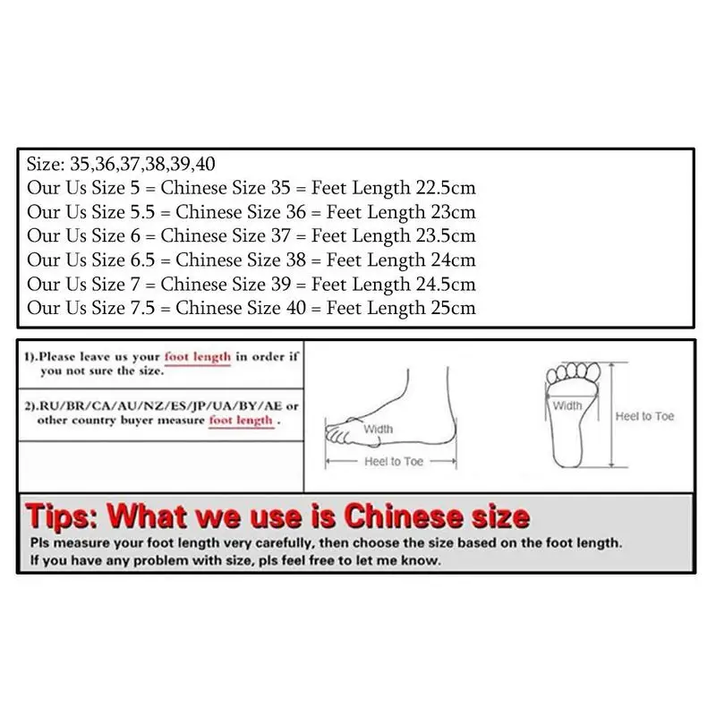 Our Us Size 5 = Chinese Size 35 = Feet Length 22.5cm