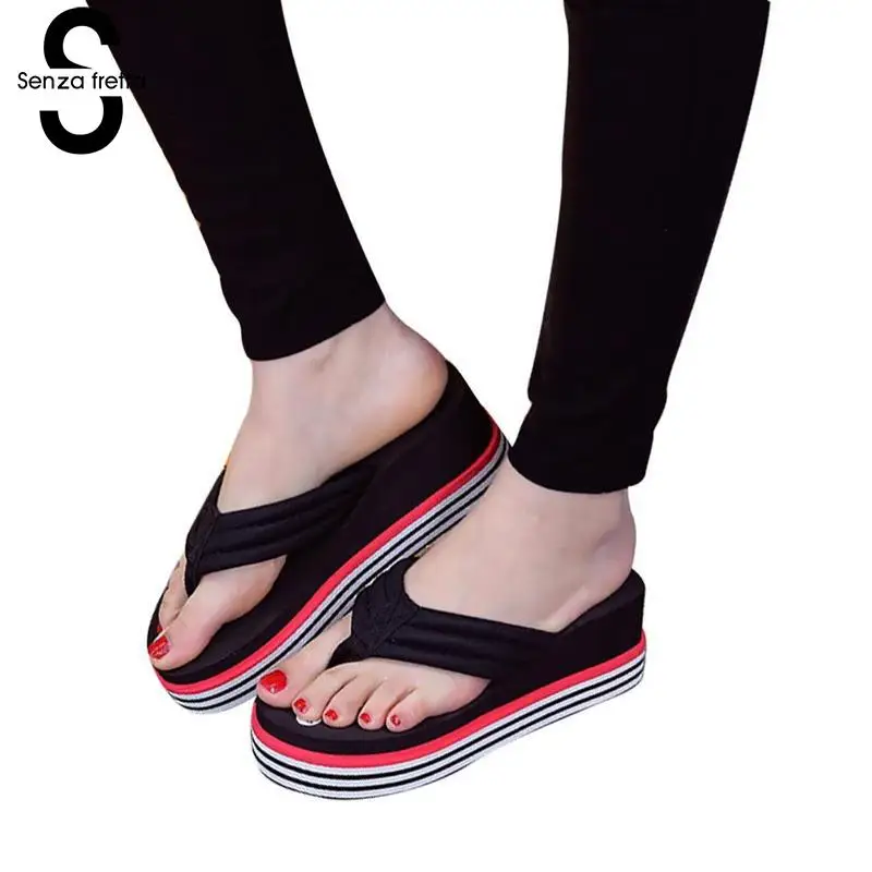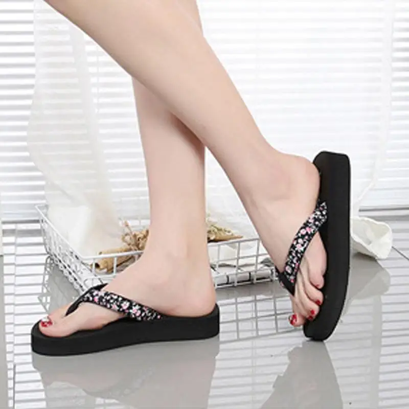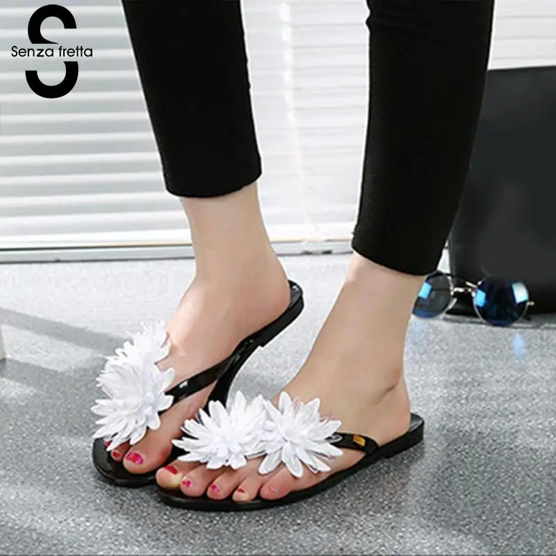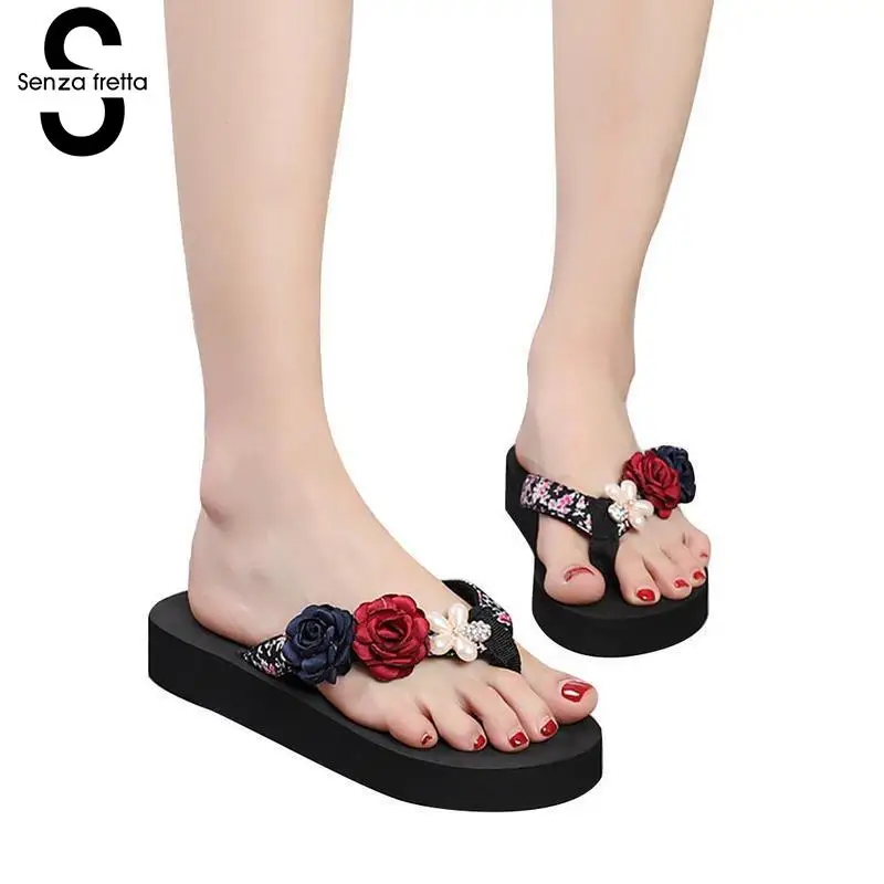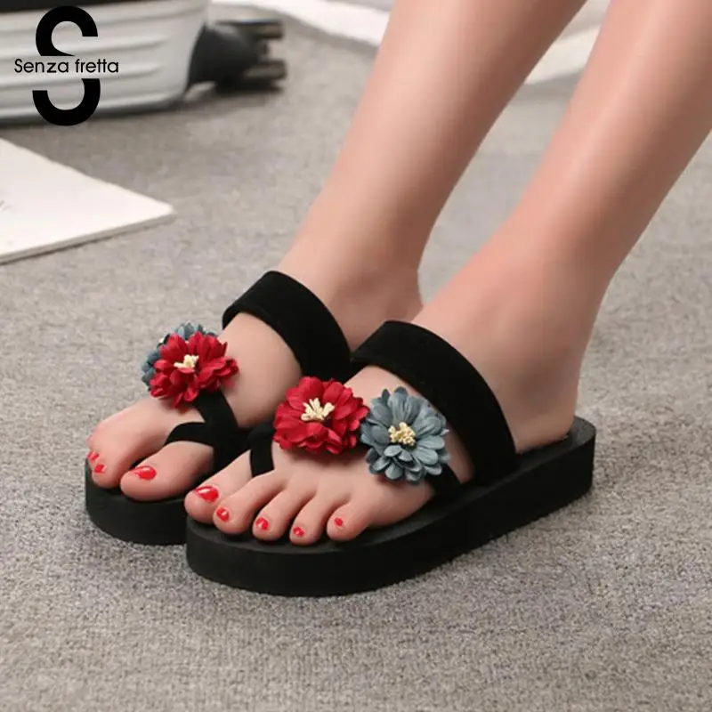 Senza Fretta Floral Black Flip Flops Women Slippers 2018 Beach Platform Shoes for Woman Summer New Females Sandals GPZ041
