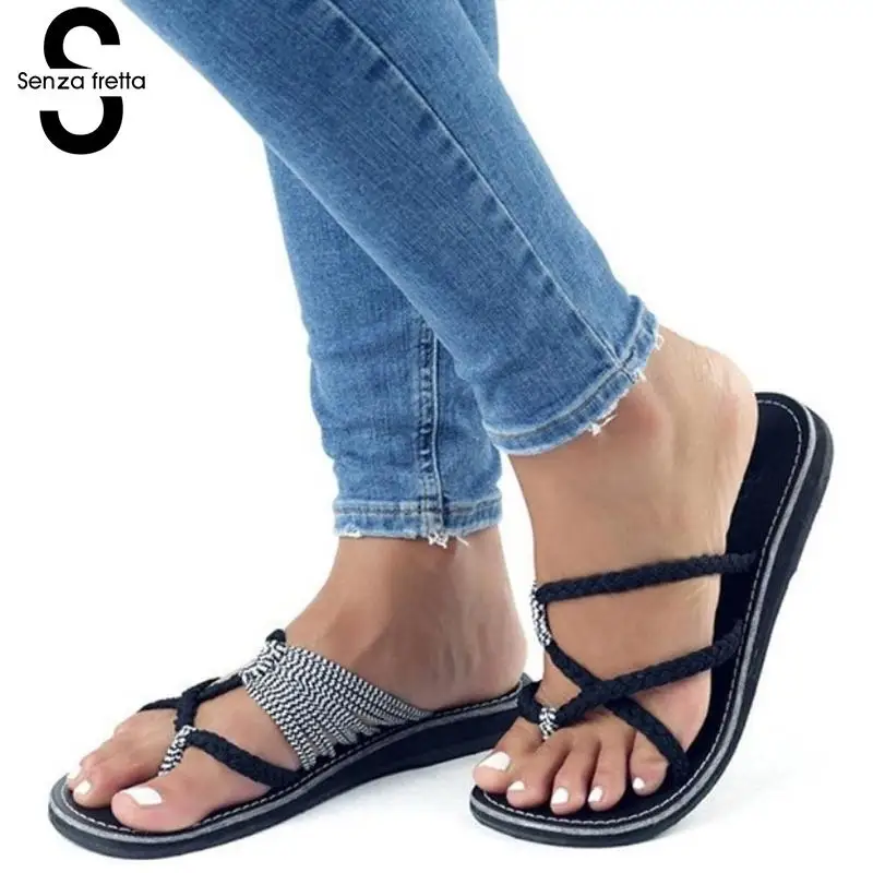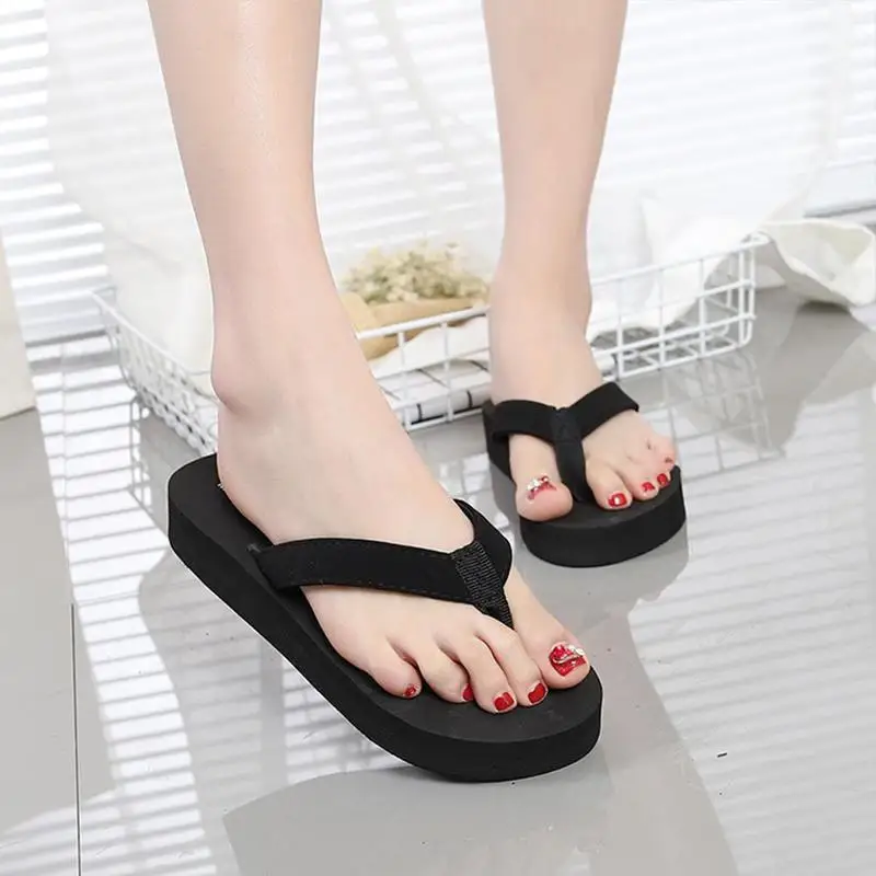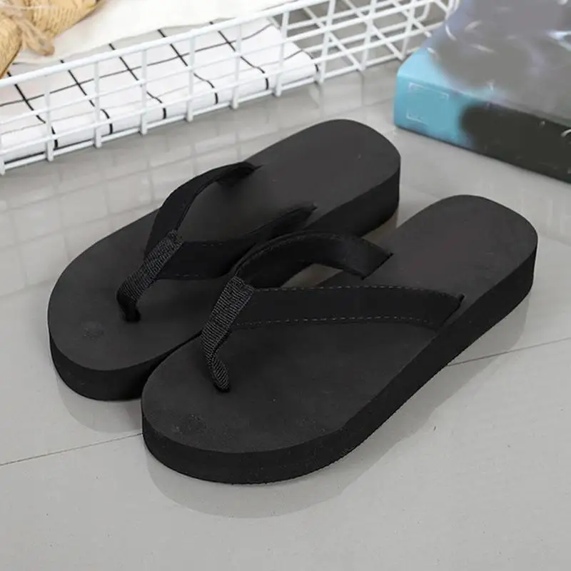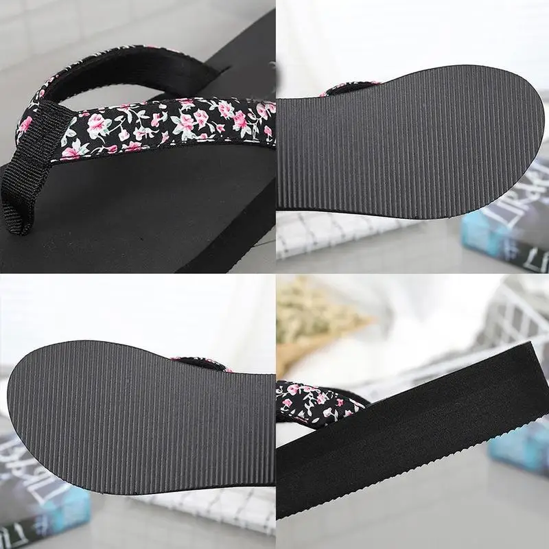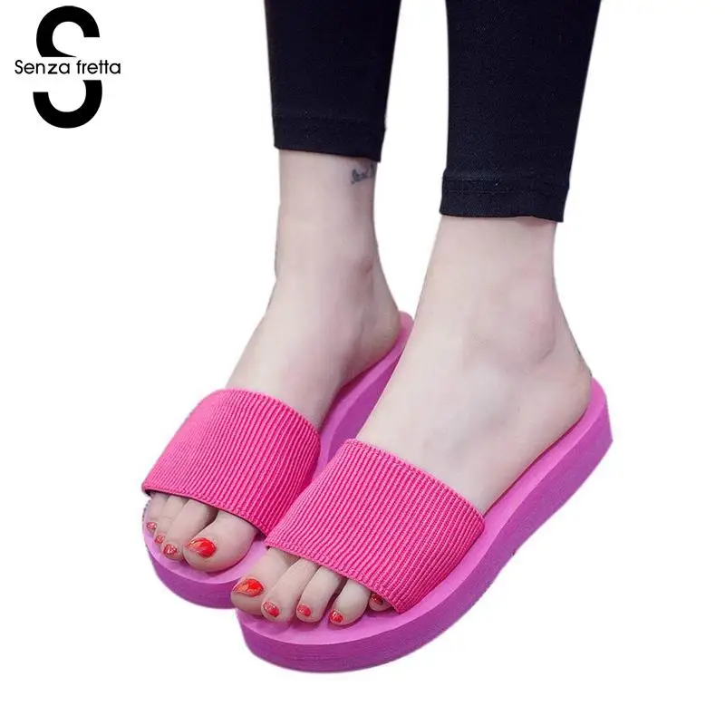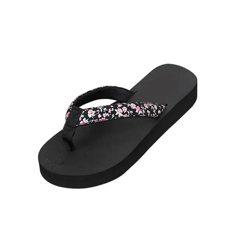 Senza Fretta Floral Black Flip Flops Women Slippers 2018 Beach Platform Shoes for Woman Summer New Females Sandals GPZ041
