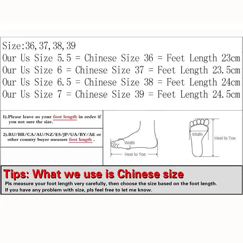 Our Us Size 5.5 = Chinese Size 36 = Feet Length 23cm