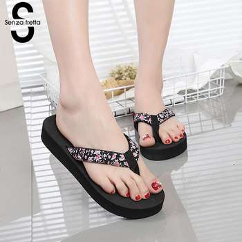 Senza Fretta Women Sandals 2018 PU Leather Rhinestone Shoes Ladies Summer Flip Flops Female Platform Sandalias sapato feminino