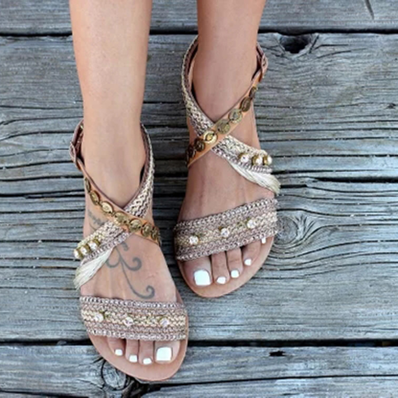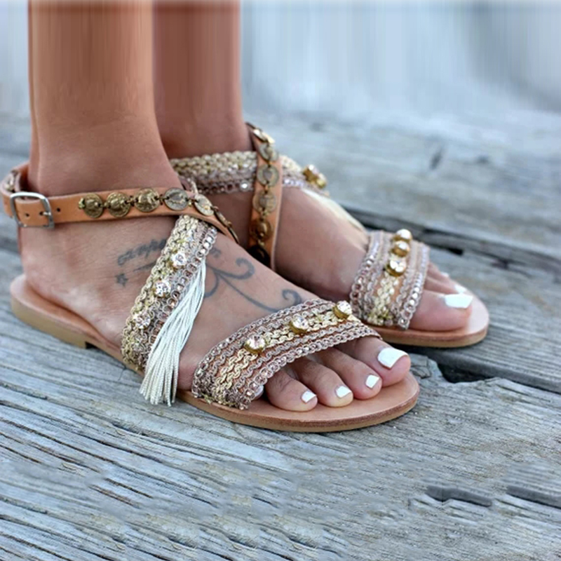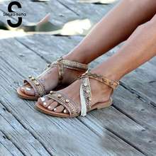 Senza Women Sandals 2018 New Flat Heels Sandals Summer Gladiator Shoes Woman Ankle Strap Roma Sandals Big Szie Beach Sandalias
