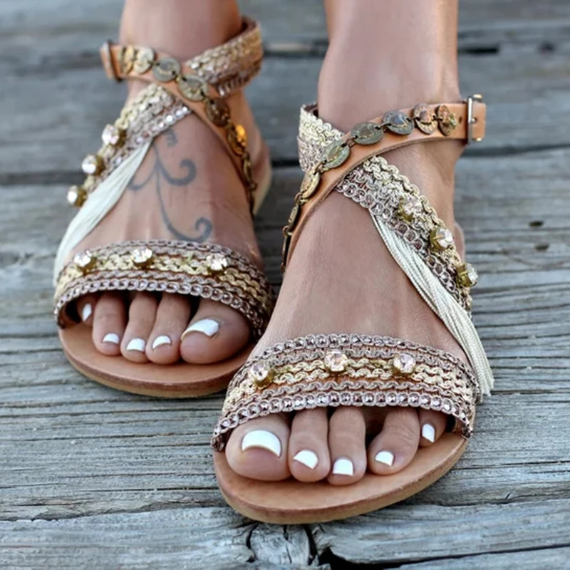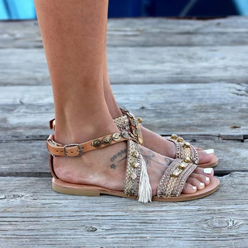Senza Women Sandals 2018 New Flat Heels Sandals Summer Gladiator Shoes Woman Ankle Strap Roma Sandals Big Szie Beach Sandalias