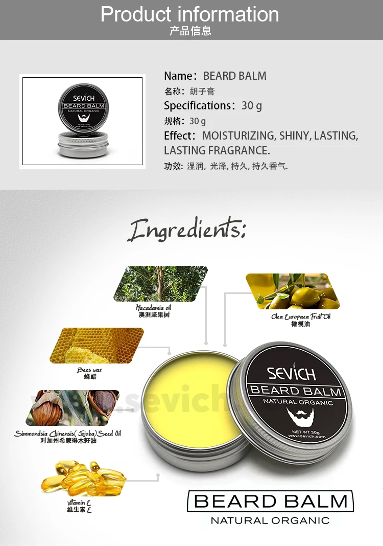 Sevich Natural Beard Conditioner Professional Beard Balm For Beard Growth Organic Moustache Wax For Beard Smooth Styling