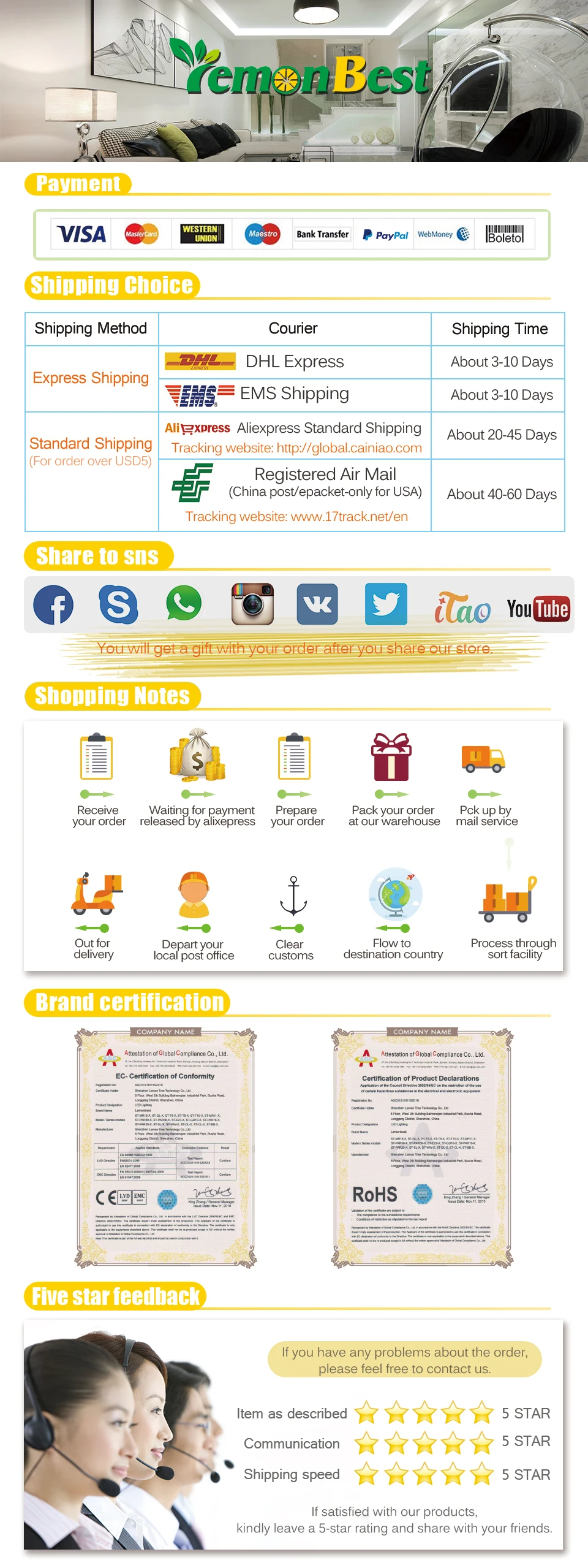 • If you did not receive the product within the guaranteed time( 45 days not including 2-5 day processing) you can request a refund or a reshipment.