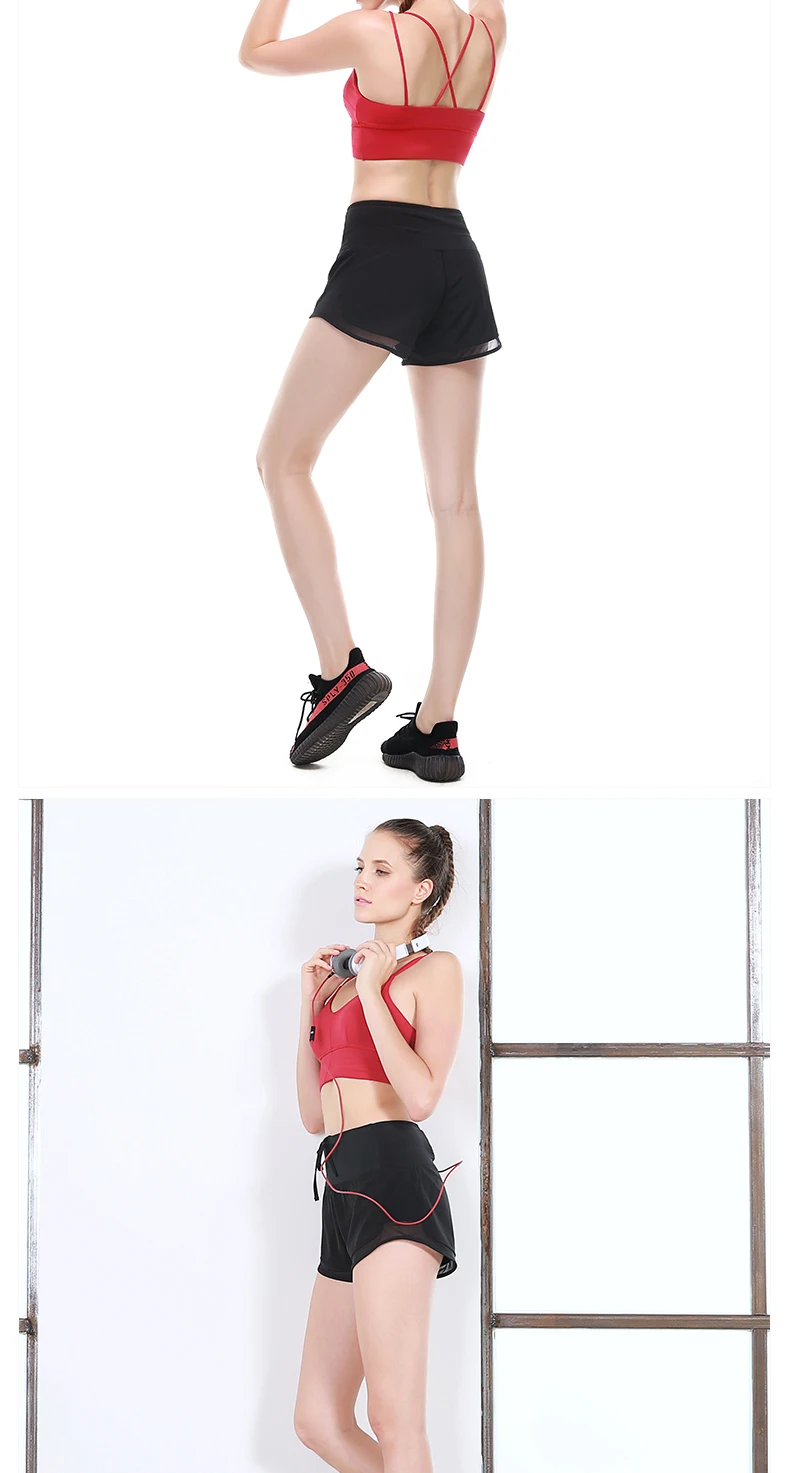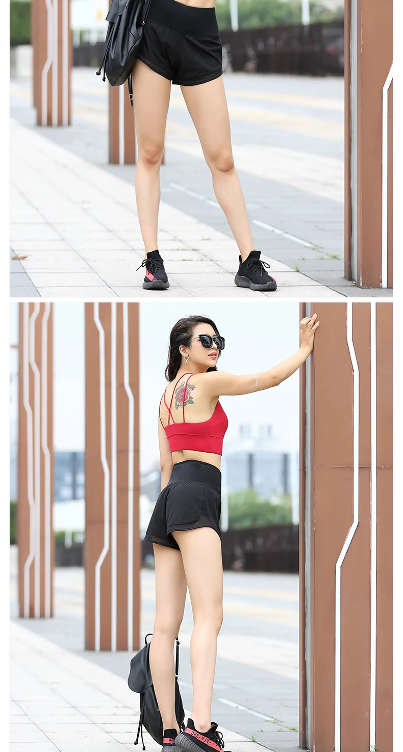 Sexy 2 in 1 Fitness Yoga Shorts Women Comfortable Mesh Gym Yoga Sport Short Running Quick Dry Cardio Training Bottom with Pocket