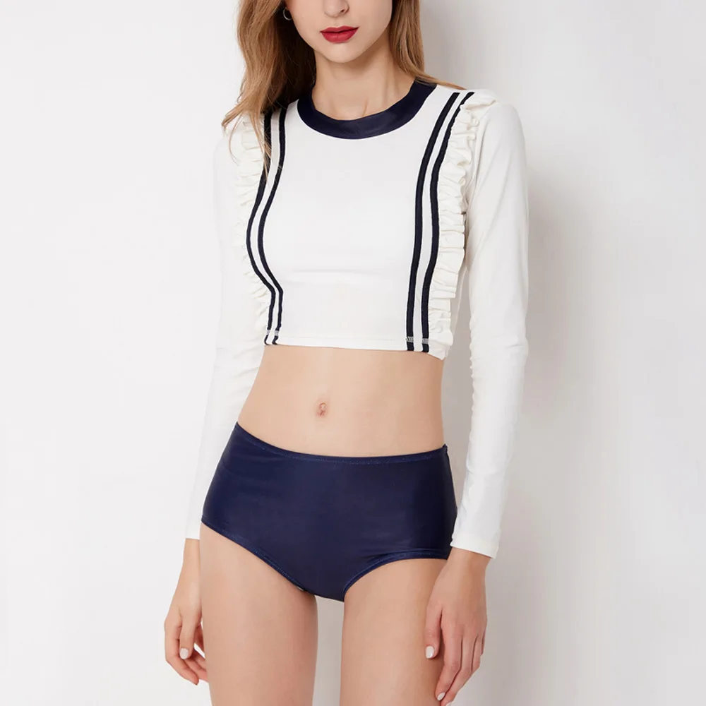 Sexy 2018 Long Sleeve Swimsuit High Waist Swimwear Women Two-Piece Surfing Beachwear Bodysuit Maillot De Bain Femme Bathing Suit