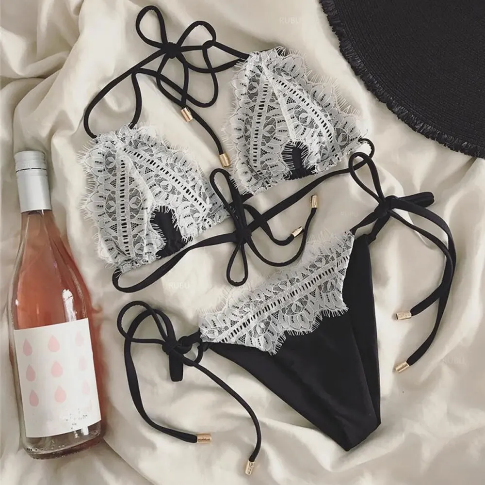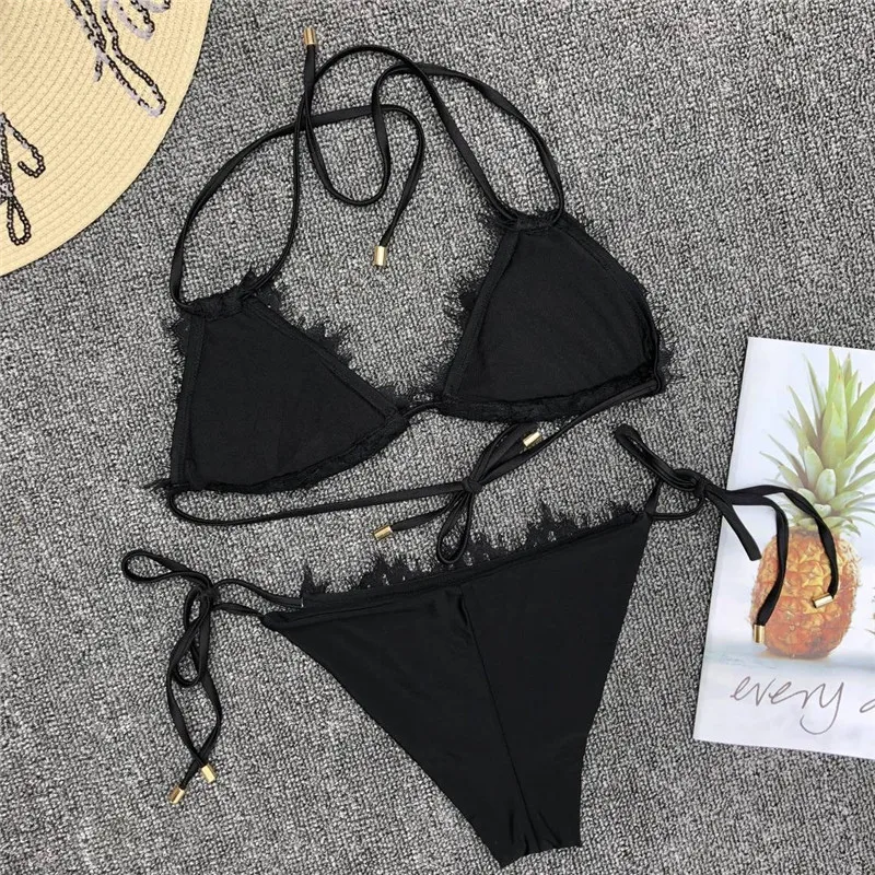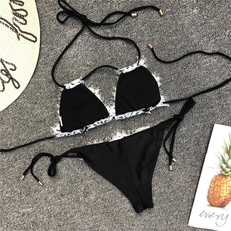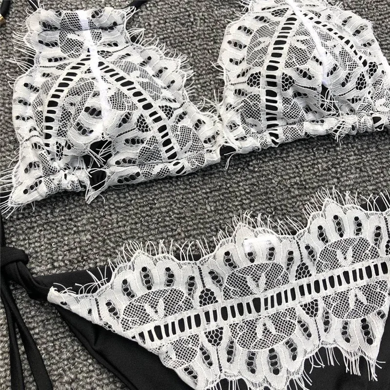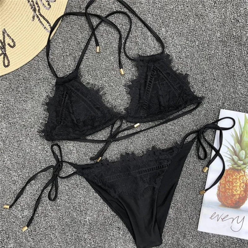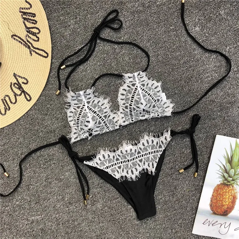 Sexy Bandage Bikini Set Women Bikinis Lace Swimwear Female 2018 New Maillot De Bain Femme Push Up Halter Bathing Suit Beach Wear