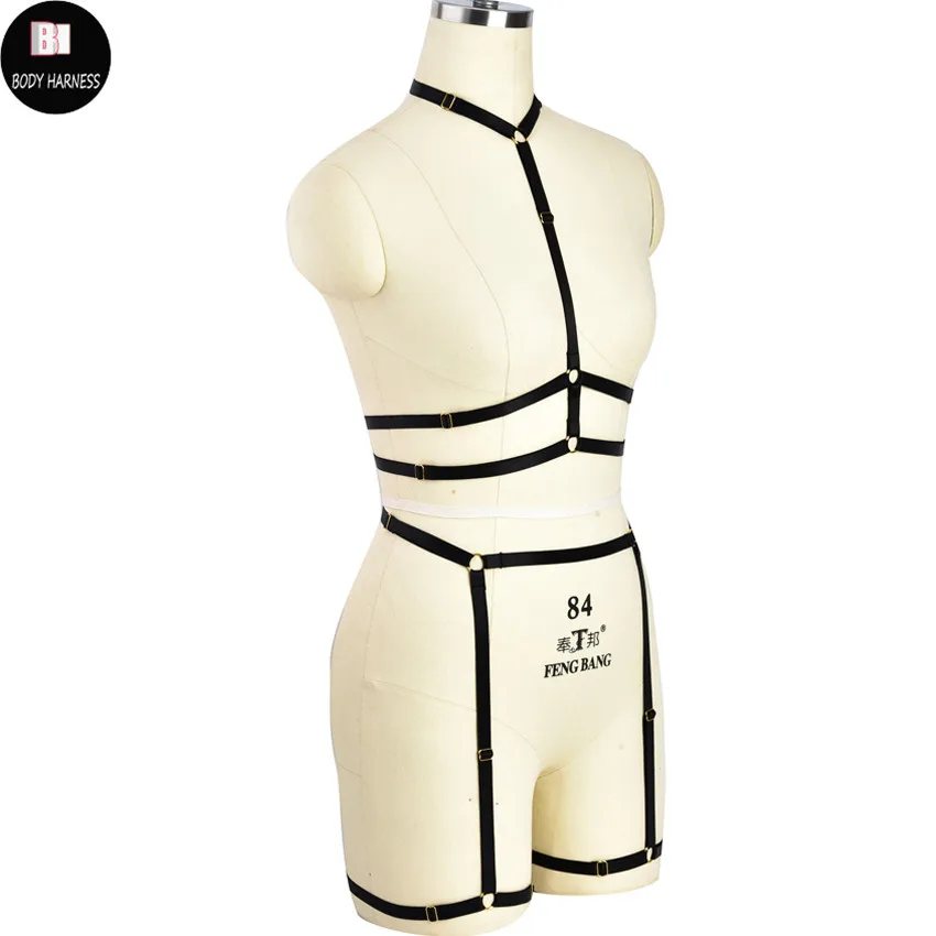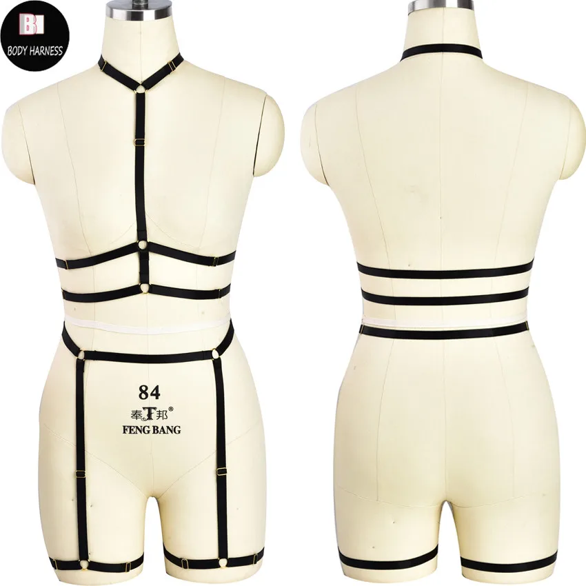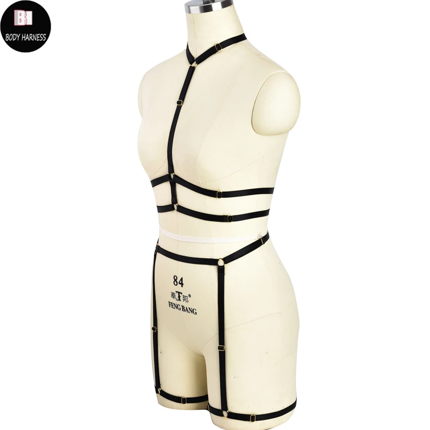 Sexy Body Harness Set Harajuku Garter Belt Gothic Body Cage Bra Pole Dance Crop Top Women Bustier Rave Festival Leg Harness