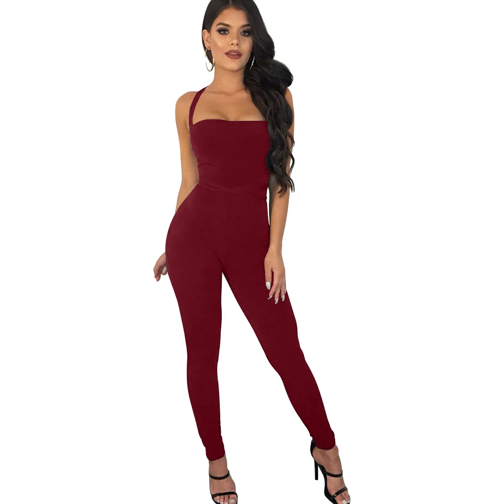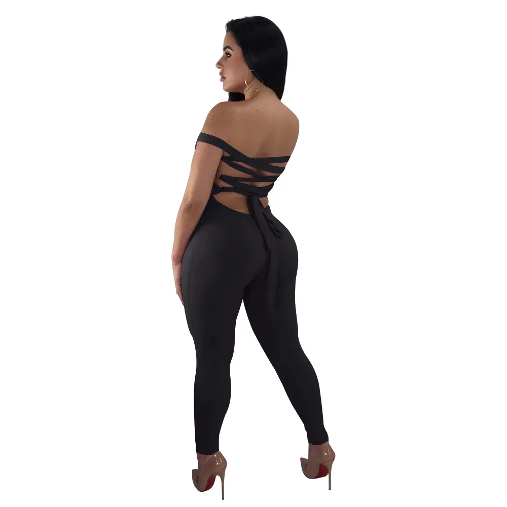 Sexy Bodycon Women Jumpsuit Slim Skinny Solid Color Bodysuit Cross Hollow Out Lady Overall Bodysuit