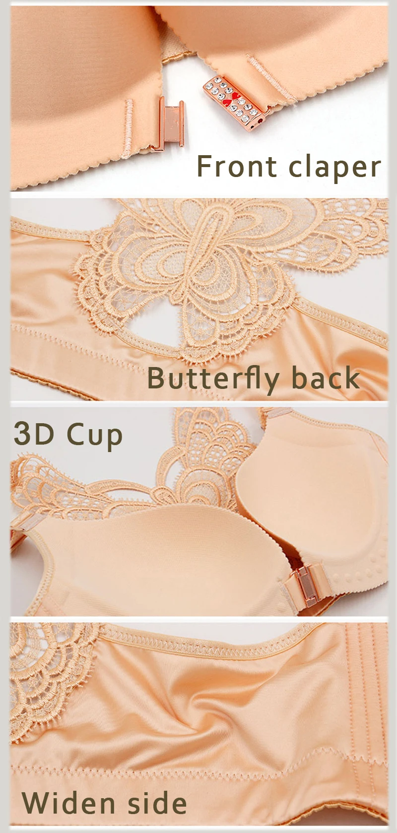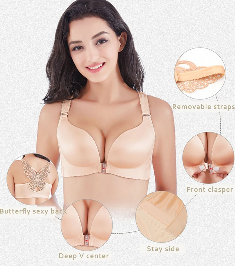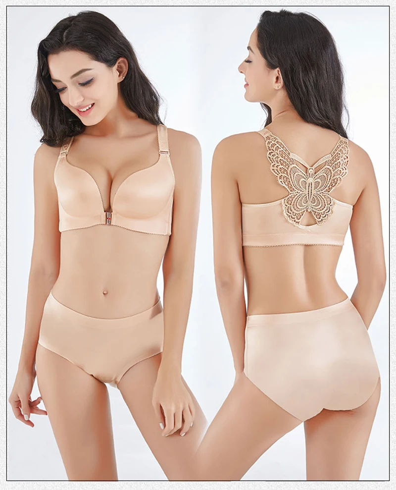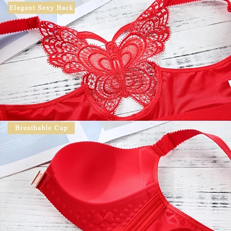 Sexy Seamless Front Closper Bra Big Size Butterfly Adjustable Push Up Bra Plus Size Bras for Women Large Size Brassiere #D