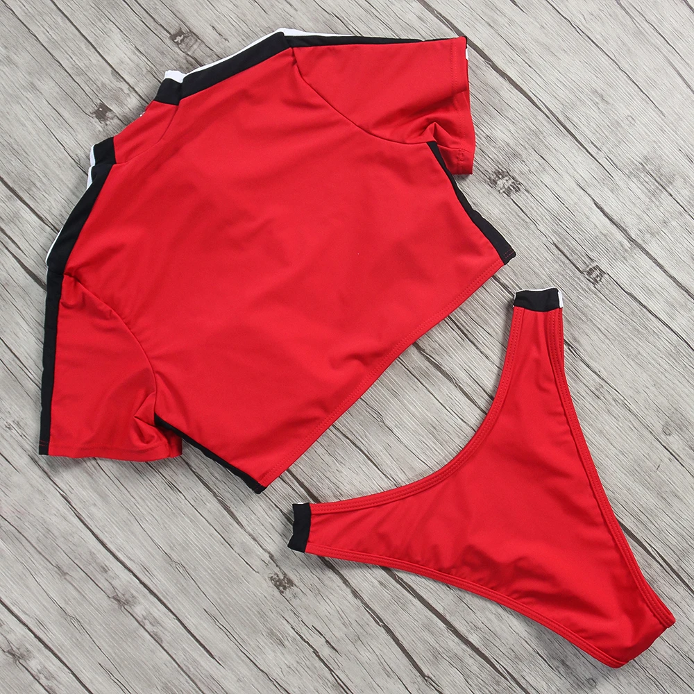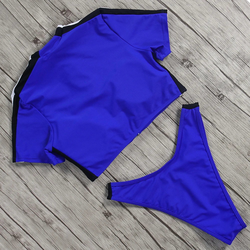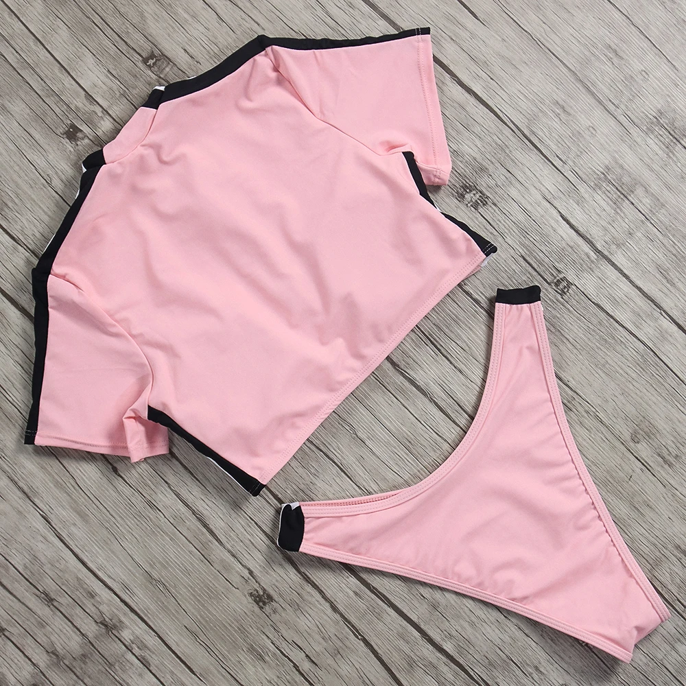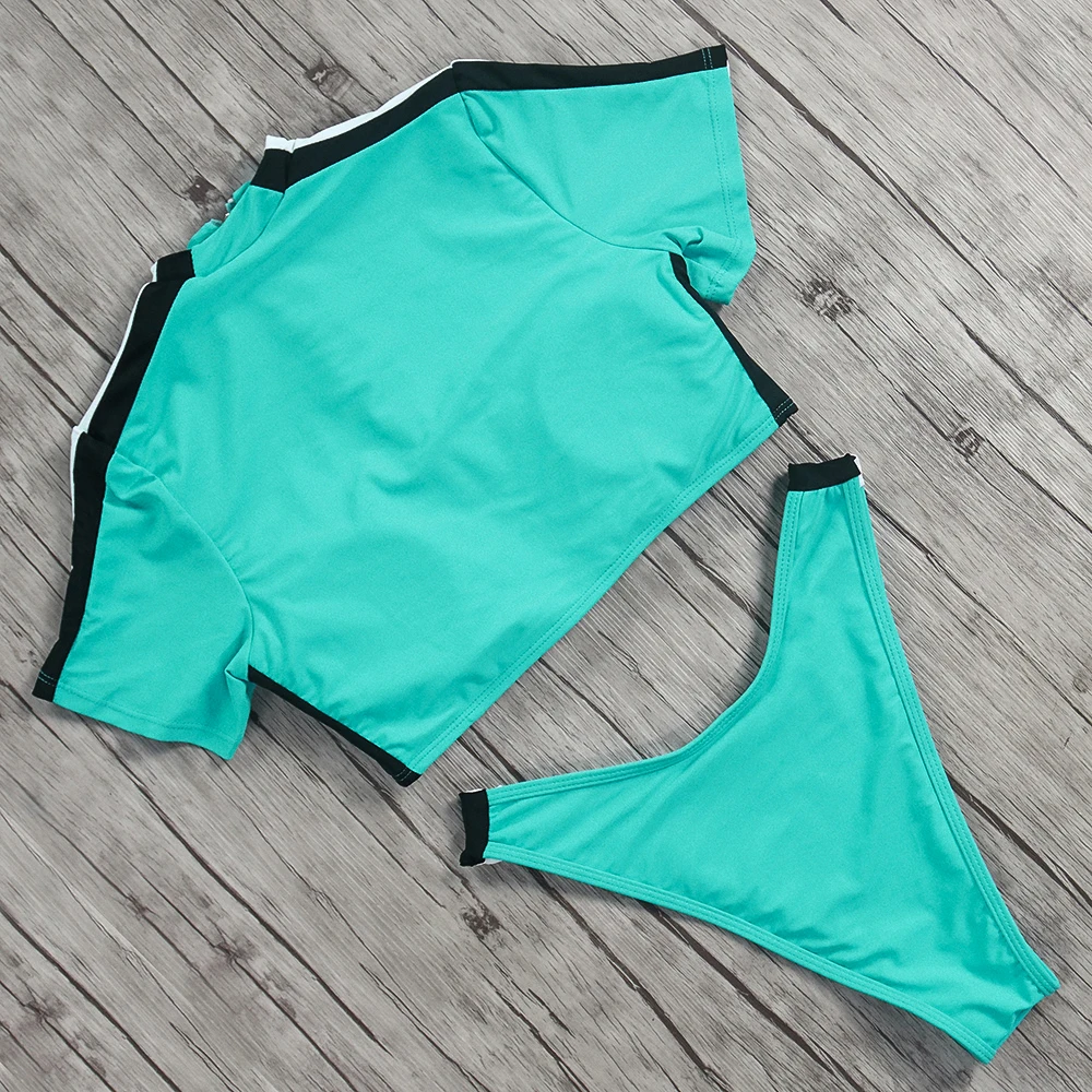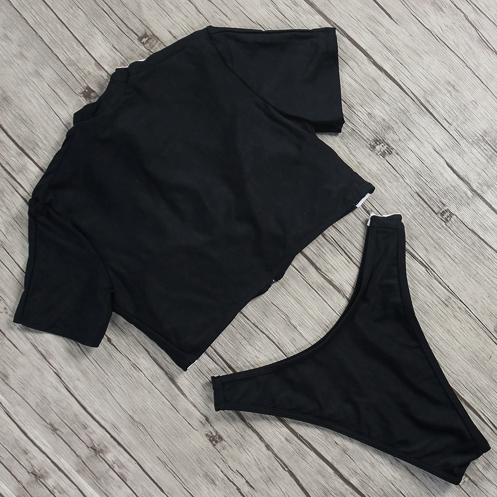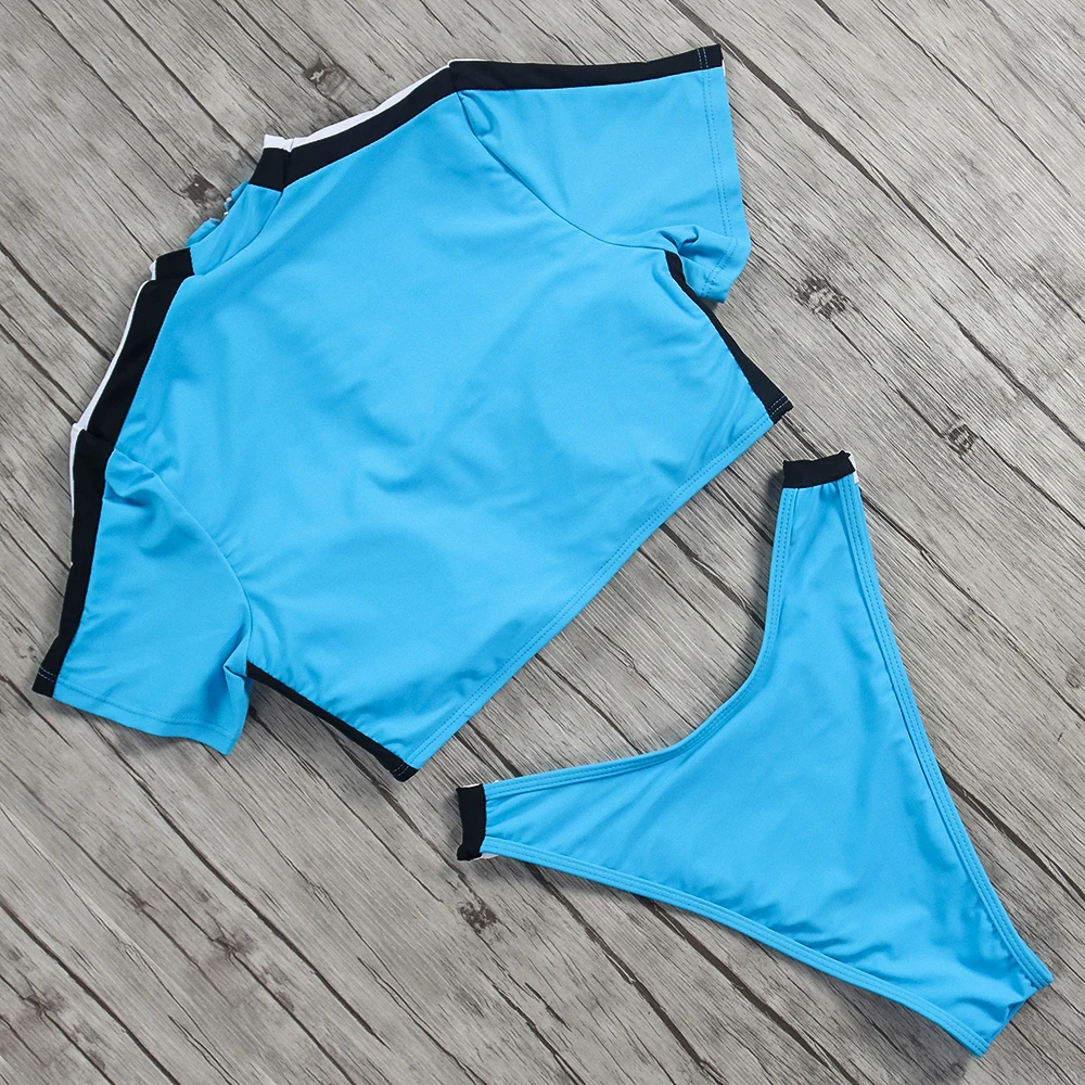 Sexy High Cut Waist Bikini Zipper Swimsuit Push Up Swimwear Women Bathing Suit Short Sleeve Bikini Set Female Beach Wear 2018