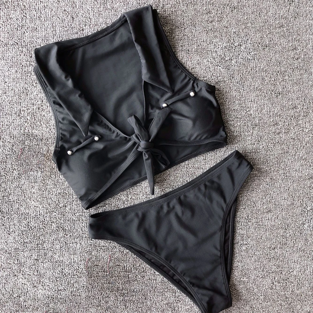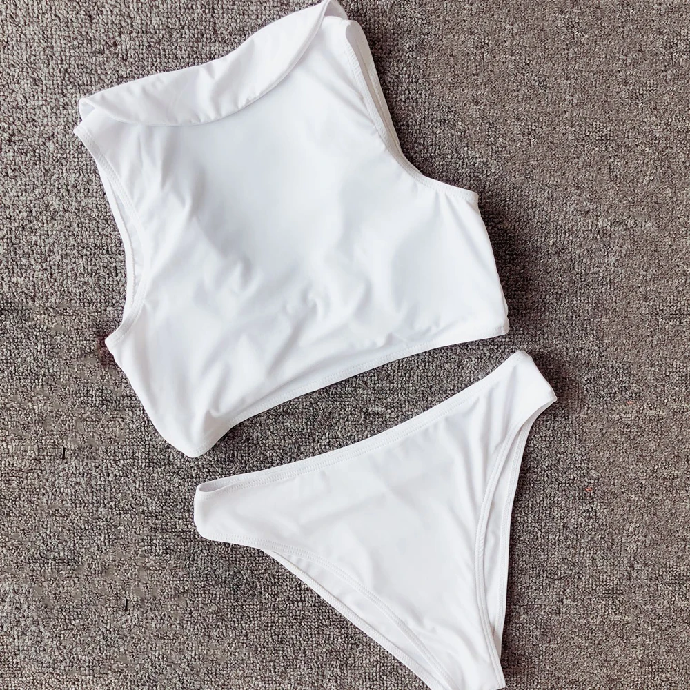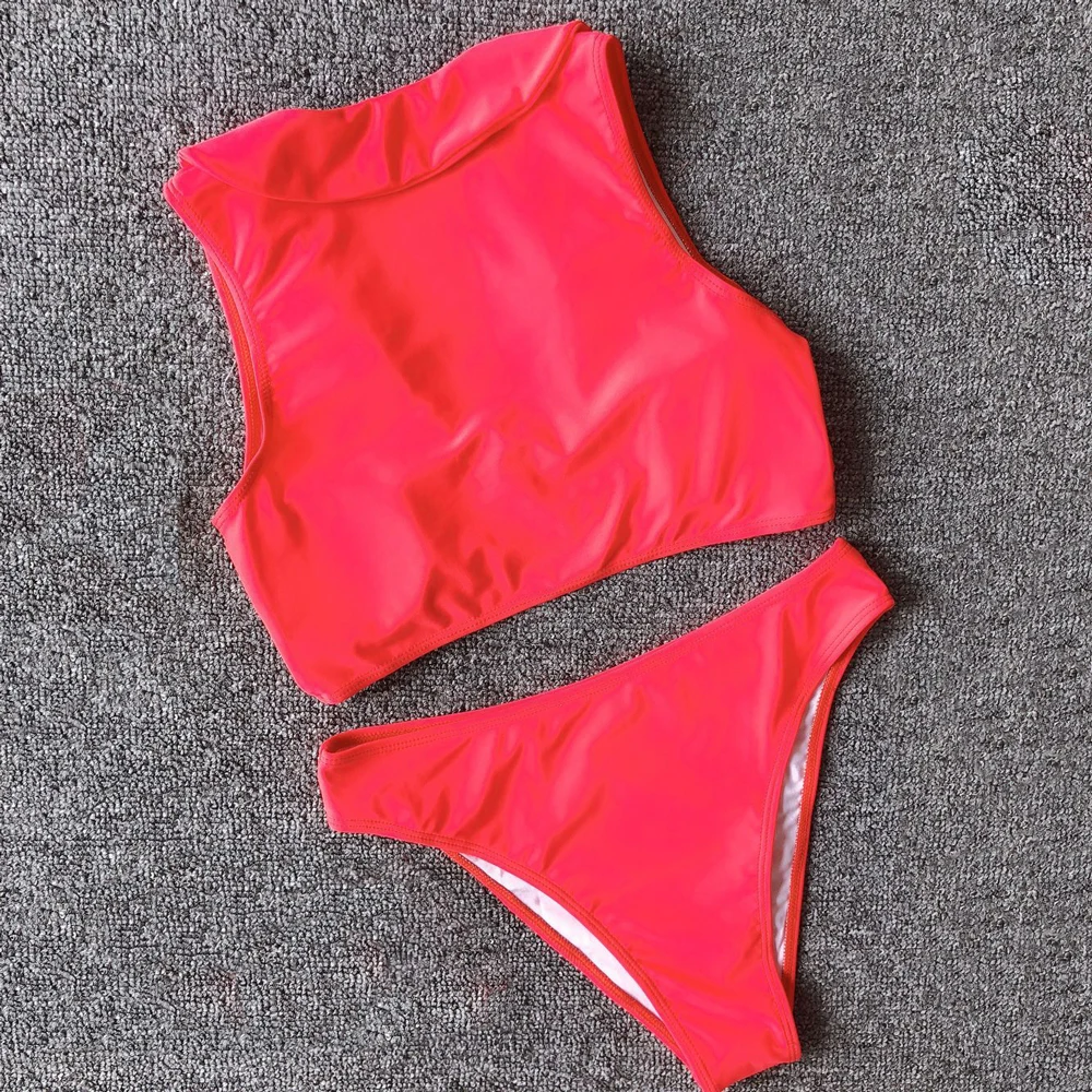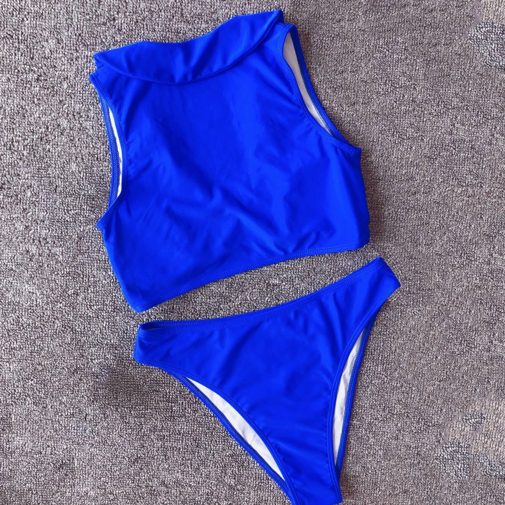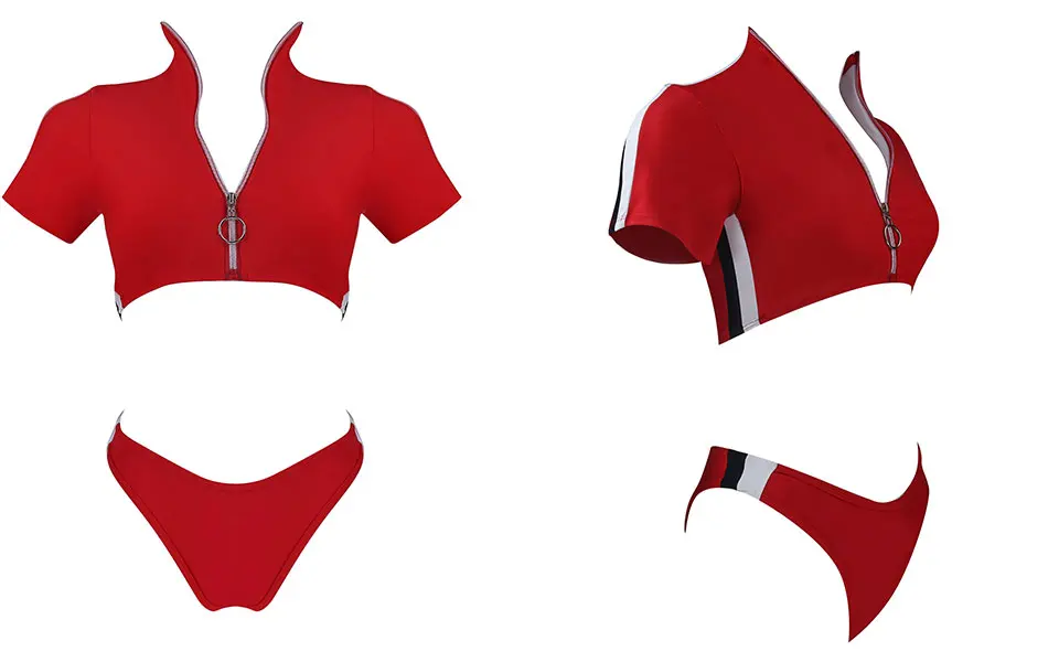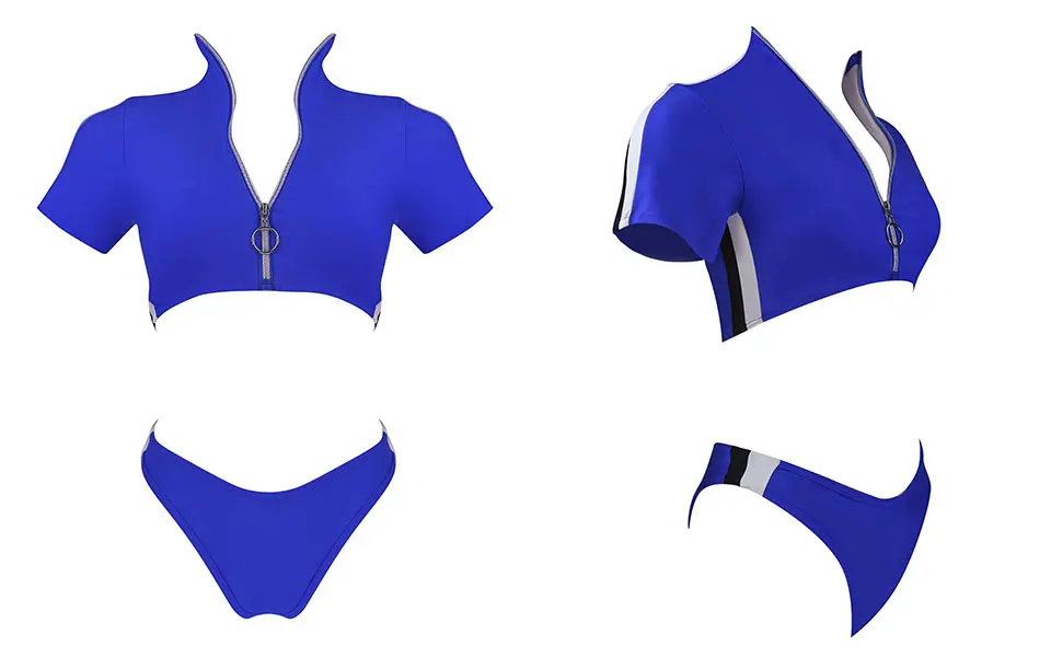 Sexy High Cut Waist Bikini Zipper Swimsuit Push Up Swimwear Women Bathing Suit Short Sleeve Bikini Set Female Beach Wear 2018