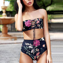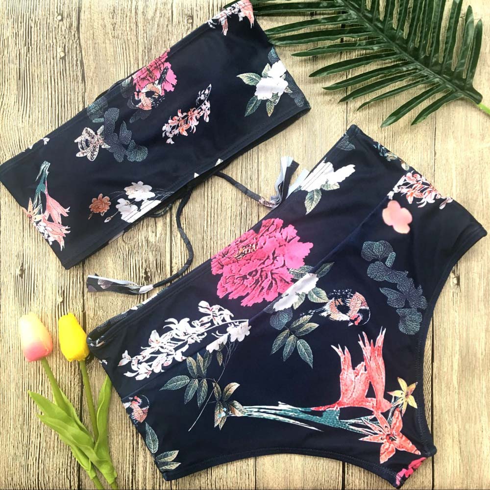 Sexy High Waist Bikini 2018 Bandeau Women Swimwear Female Floral Print Vintage Swimsuit Beach Wear Biquini Summer Bathing Suits