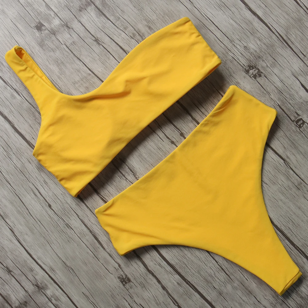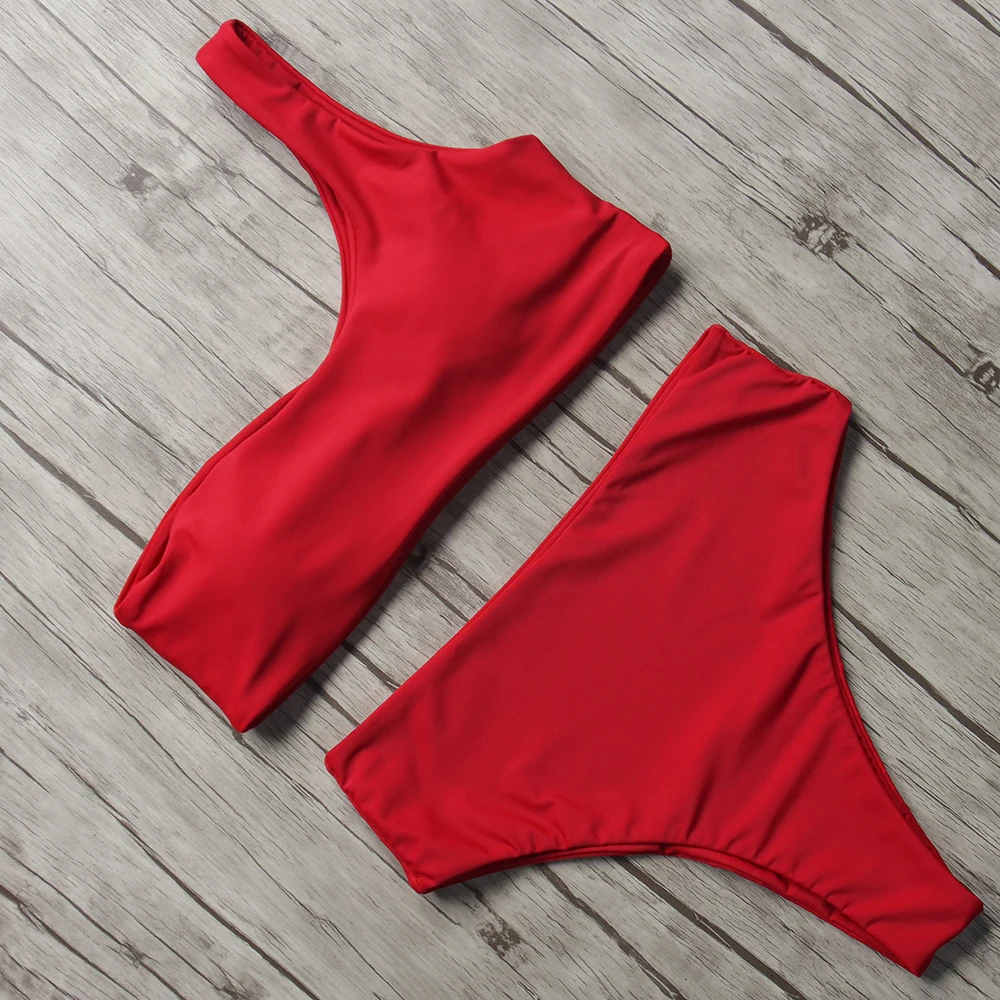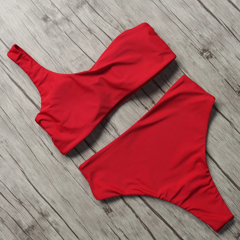Sexy High Waist Cut Bikini One Shoulder Swimsuit Brazilian Push Up Swimsuit 2018 New Women Bathing Suit Beach Swim Wear Biquini