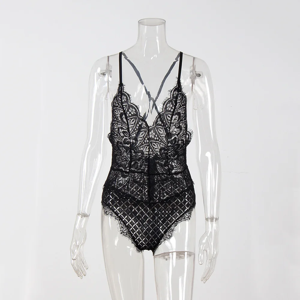 Sexy Lace Bodysuit Jumpsuit Women Bodycon Hollow Out Rompers Womens Jumpsuit Body Overalls Combinaison Femme