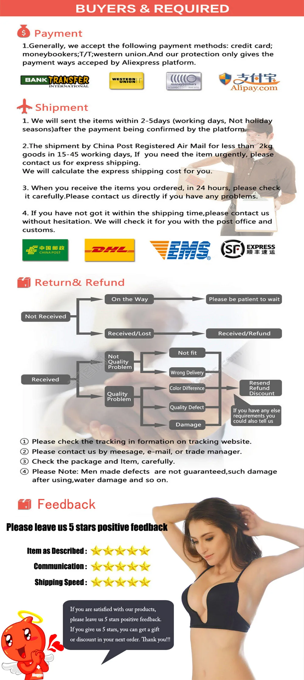 • If you did not receive the product within the guaranteed time( 45 days not including 2-5 day processing) you can request a refund or a reshipment.