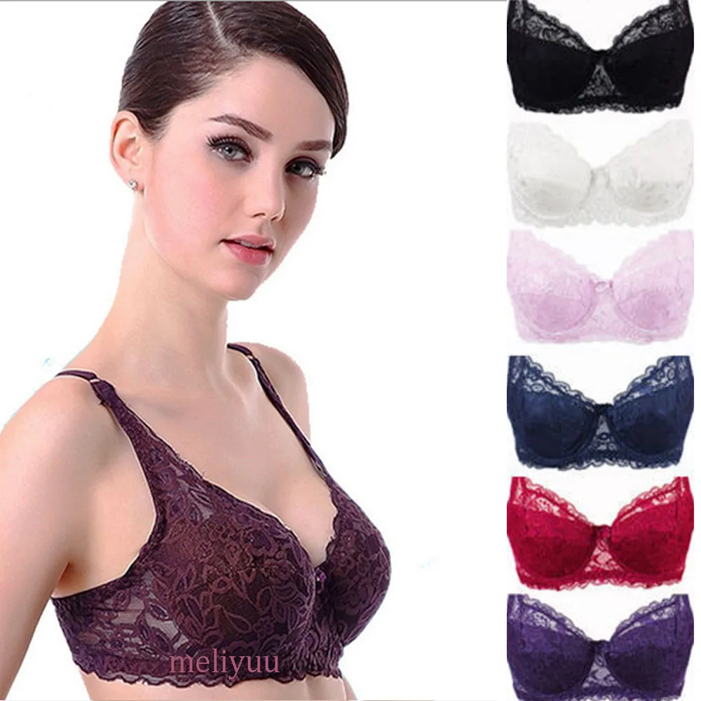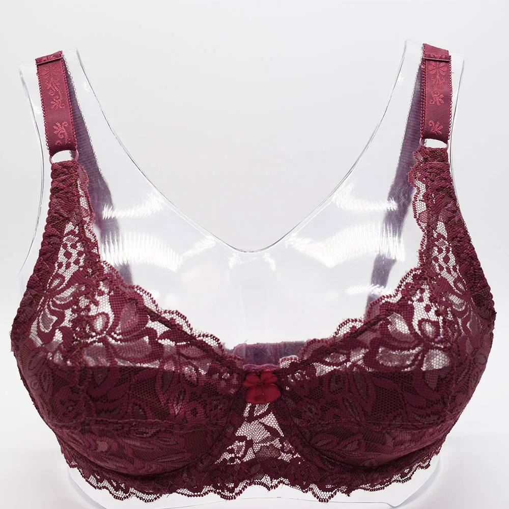 Sexy Lace Bra Plus size A B C D Cup Underwire Gather Adjustment Plunge Lingerie Bras For Women Embroidery Underwear BH Top