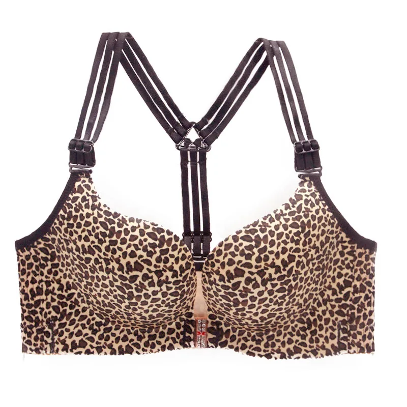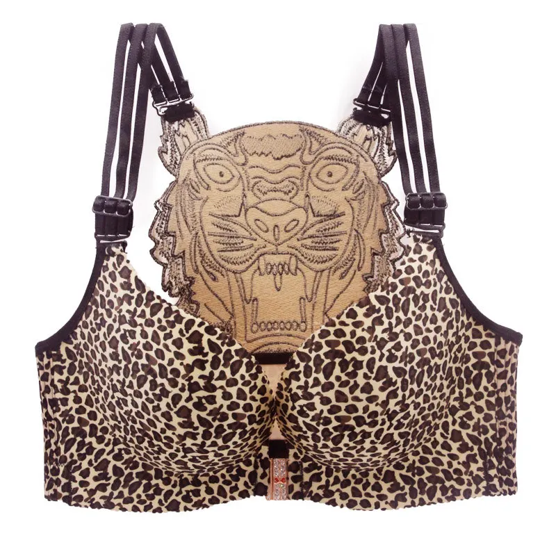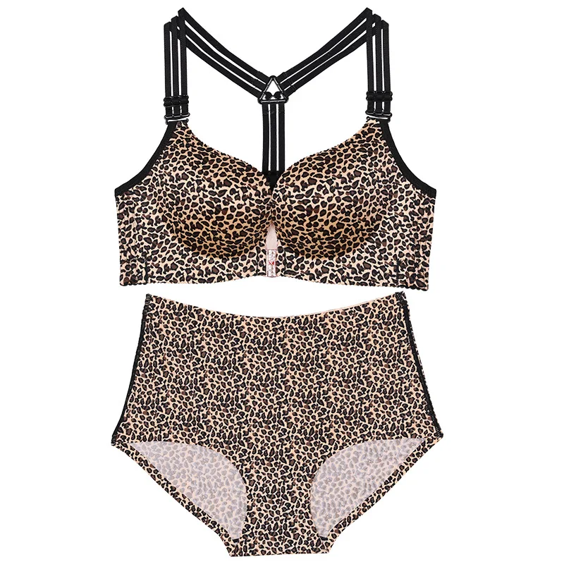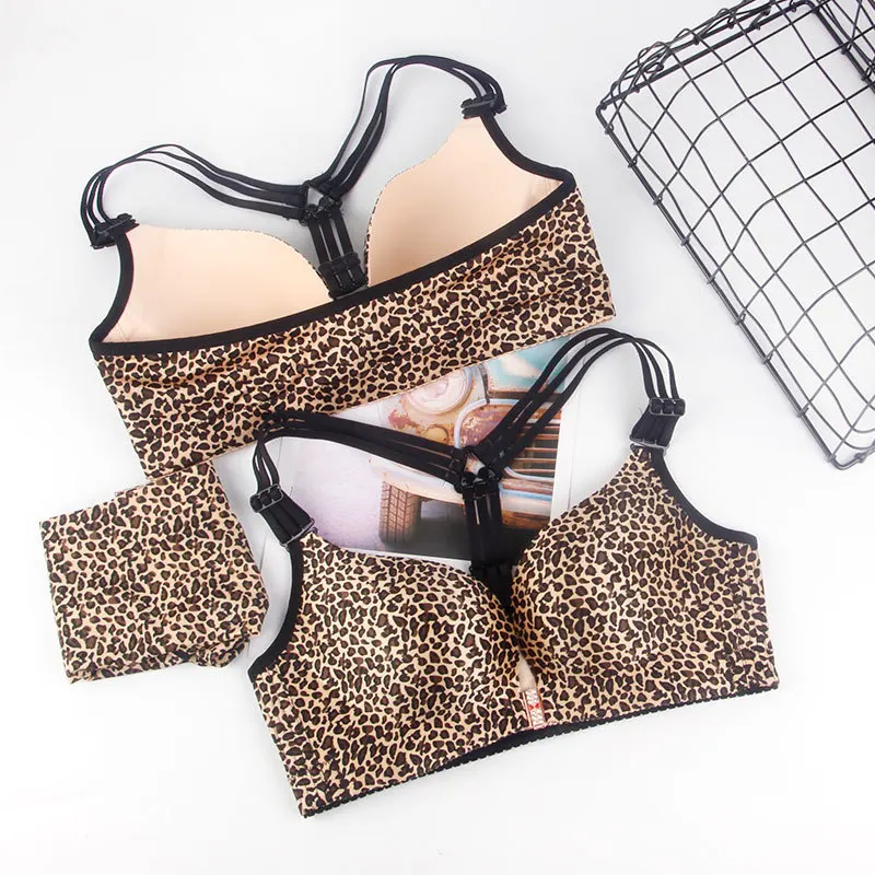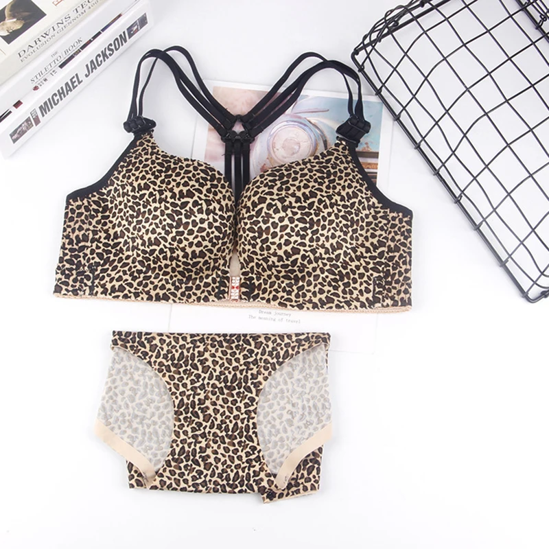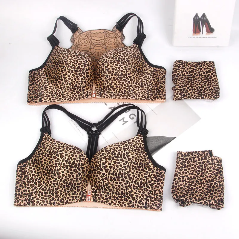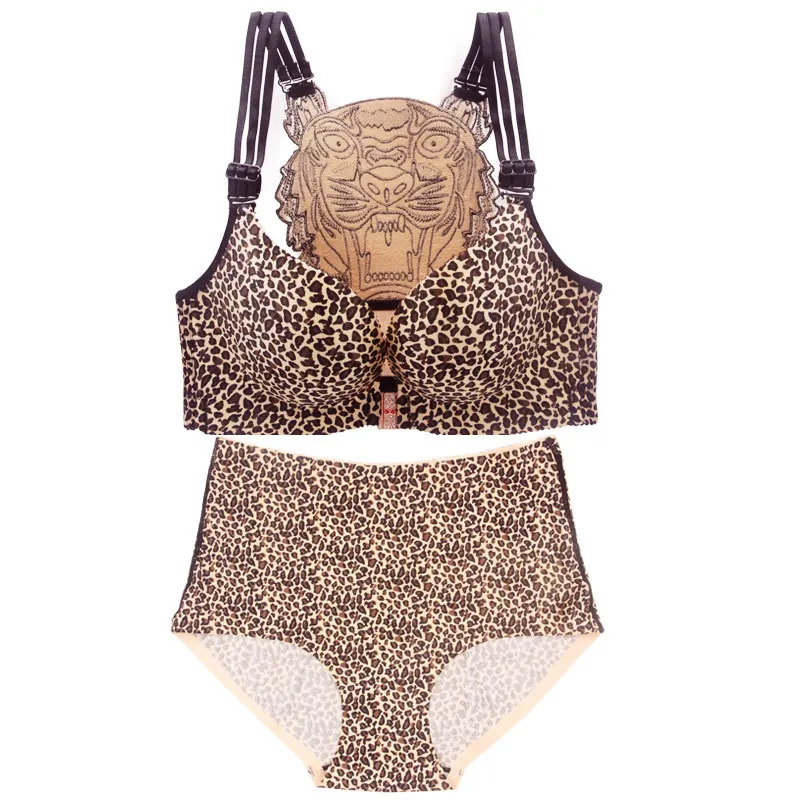 Sexy Leopard Tiger Underwear Women Set Front Closure Push Up Bra Set Plus Size Seamless Big Size Bra and Panty Set Lingerie Set