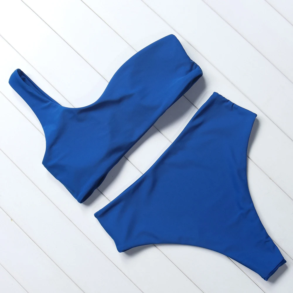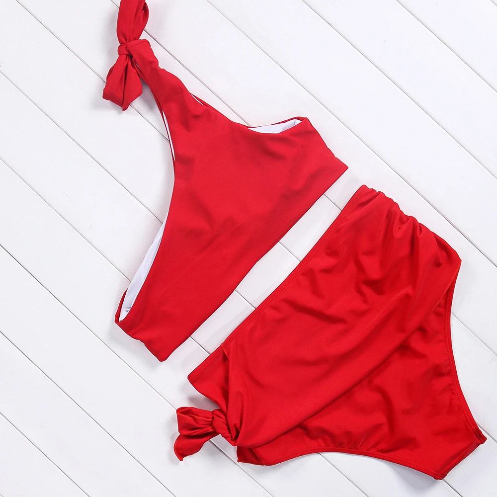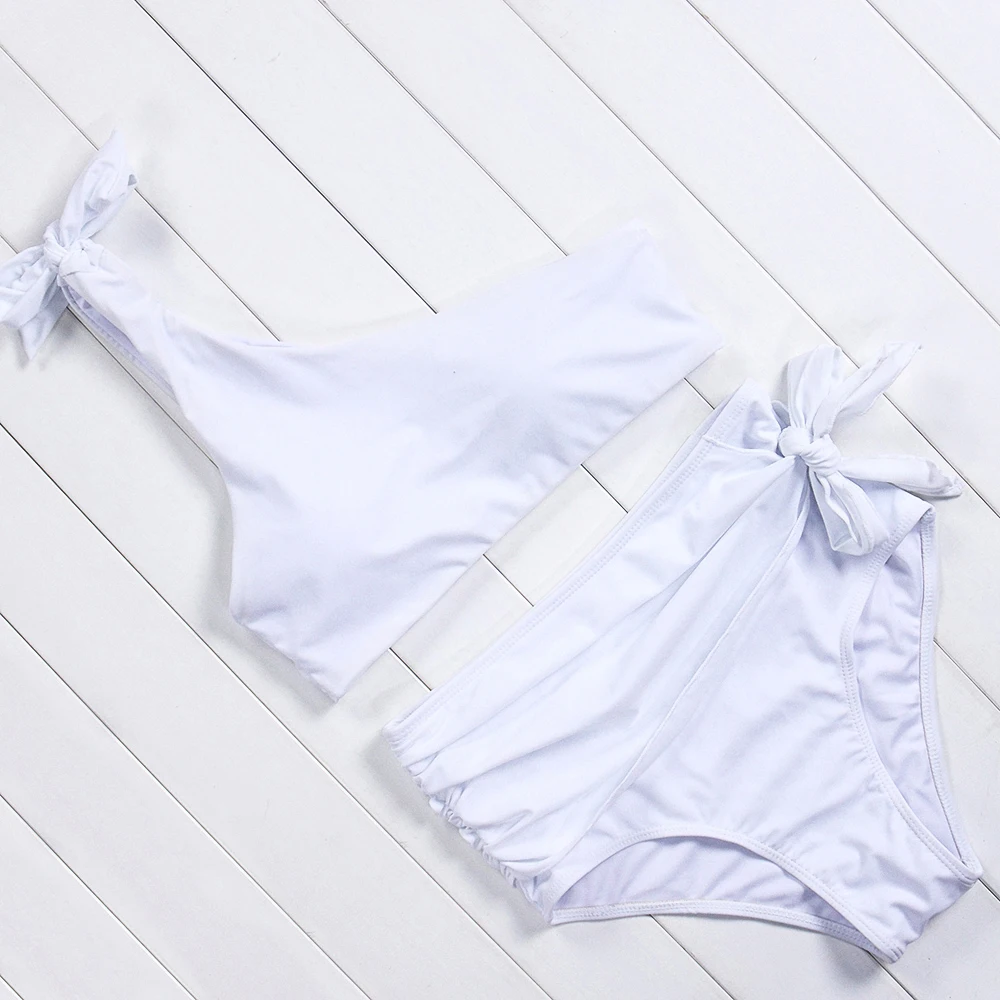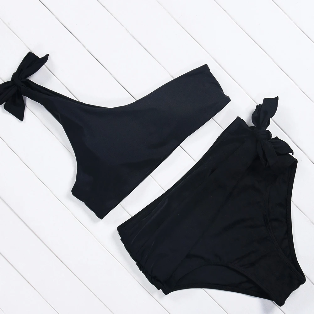 Sexy New One Shoulder Bikini High Waist Cut Swimsuit Vintage Women Swimwear 2018 Push Up Brazilian Bikini Set Swim Bathing Suit